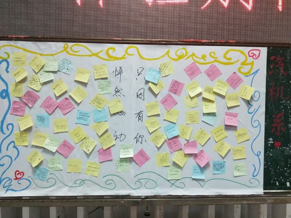 活动经过前期对男女同学的问卷调查,精心开展了“花言蜜语”、、“暖心服务”和“温馨电影”系列活动。三月六日晚举办方将各种颜色的卡纸发放给各班同学,收集大家写下的祝福,张贴在心愿板上,3月7日这天挑选50份较具代表性的祝福由男生组建的“护花使者”志愿服务队带着准备好的康乃馨一起送给系部女生,同时在节日当天,“护花使者”志愿服务队为系部女生打水、拿快递,充分展现对女生的关爱,晚自习期间为全体女生播放了提前制作的祝福视频和一部女性题材的电影,鼓励全体女生自尊自爱自立自强。