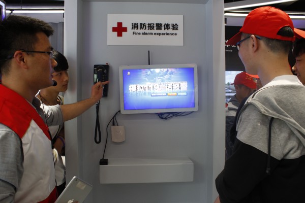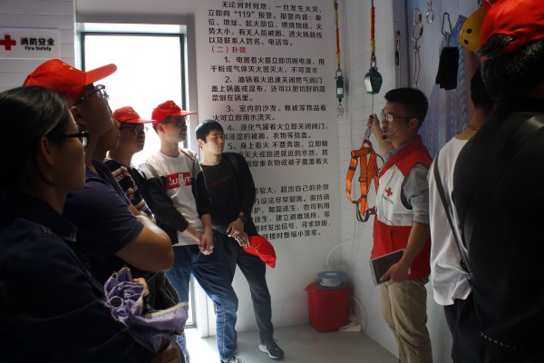 接着殷老师让同学们参与了电脑屏幕上的自助安全知识互动回答,让同学们充分认识到自身掌握的急救知识有多少。带着大家的答题情况,殷老师结合各类急救知识带领大家边学习边体验,包含酒驾、毒驾、火灾、探险工具使用、地震、高楼逃生等情况的设备模拟体验。让同学们在实地体验中感受各类危险及意外情况,感受生命的脆弱,学习相关应对方法。