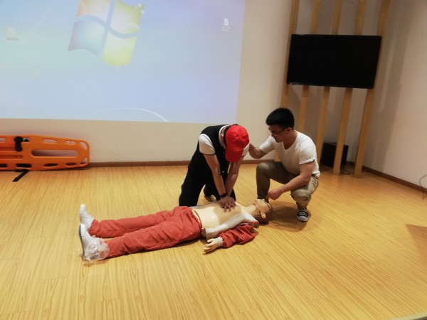 最后殷老师重点为大家讲解了心脏复苏的基础知识,查看患者是否有意识,使患者仰卧在平面上,检查口中是否有异物等基础的判断力。经过老师的细致分析,同学们已经基本了解了心脏复苏的步骤和注意事项。部分学生代表参与了实操训练,老师手把手改正同学的细节错误,通过综合训练确保同学的手法,按压吹气时间比例等都学习到位。