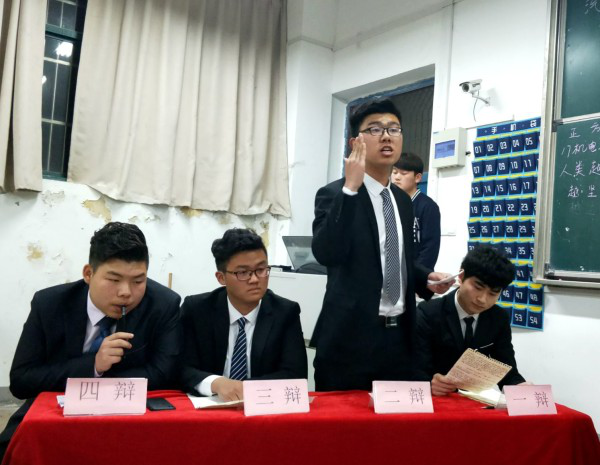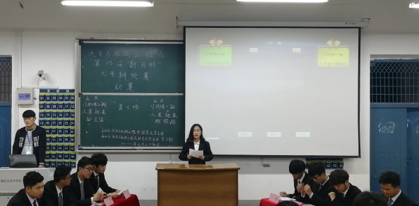 3月20日晚,比赛在17汽修2班和17营销班两支代表队之间展开。在主席介绍完嘉宾和宣布完比赛规则后,正反双方进行自我介绍,反方一连串的口号让观众喝彩,掌声不断。接着双方围绕“大学生就业专业知识和综合素质哪个更重要”的问题展开辩论。正方一辩阐述己方观点,以建筑房屋为例,提出只有扎实的专业知识基础是工作的前提,反方一辩则认为只有提高综合素质才能在工作中叱咤风云。双方选手在立论、攻辩环节中思路清晰,引经据典,字字珠玑,使现场气氛迅速升温。在随后进行的自由辩论环节中,双方选手就辩题展开更深层次的辩论,个个妙语连珠舌绽莲花的辩论一次次比赛推向高潮。最终17营销班代表队获得胜利,来自17汽修2班的高盛同学和17营销班的杨玉婷同学摘得优秀辩手的称号。