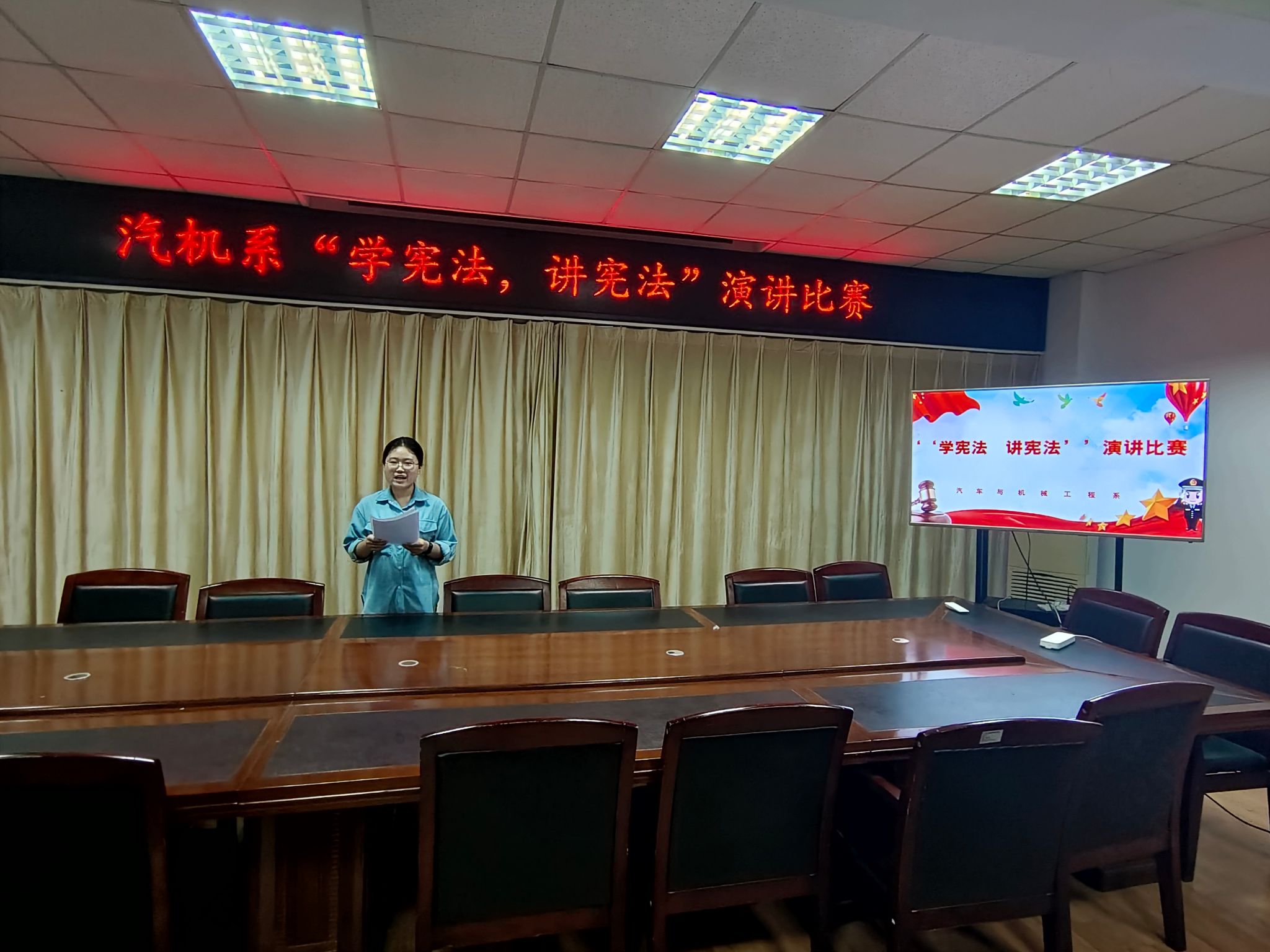为深入学习贯彻习近平法治思想,培养、增强学生的宪法意识和法治素养,9月25日,汽车与机械工程系“学宪法 讲宪法”主题演讲比赛在南区教学楼三楼会议室举行。来自大一大二的三十多名同学参加了此次演讲比赛。