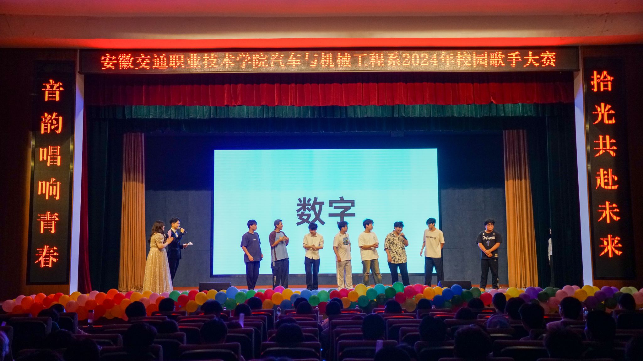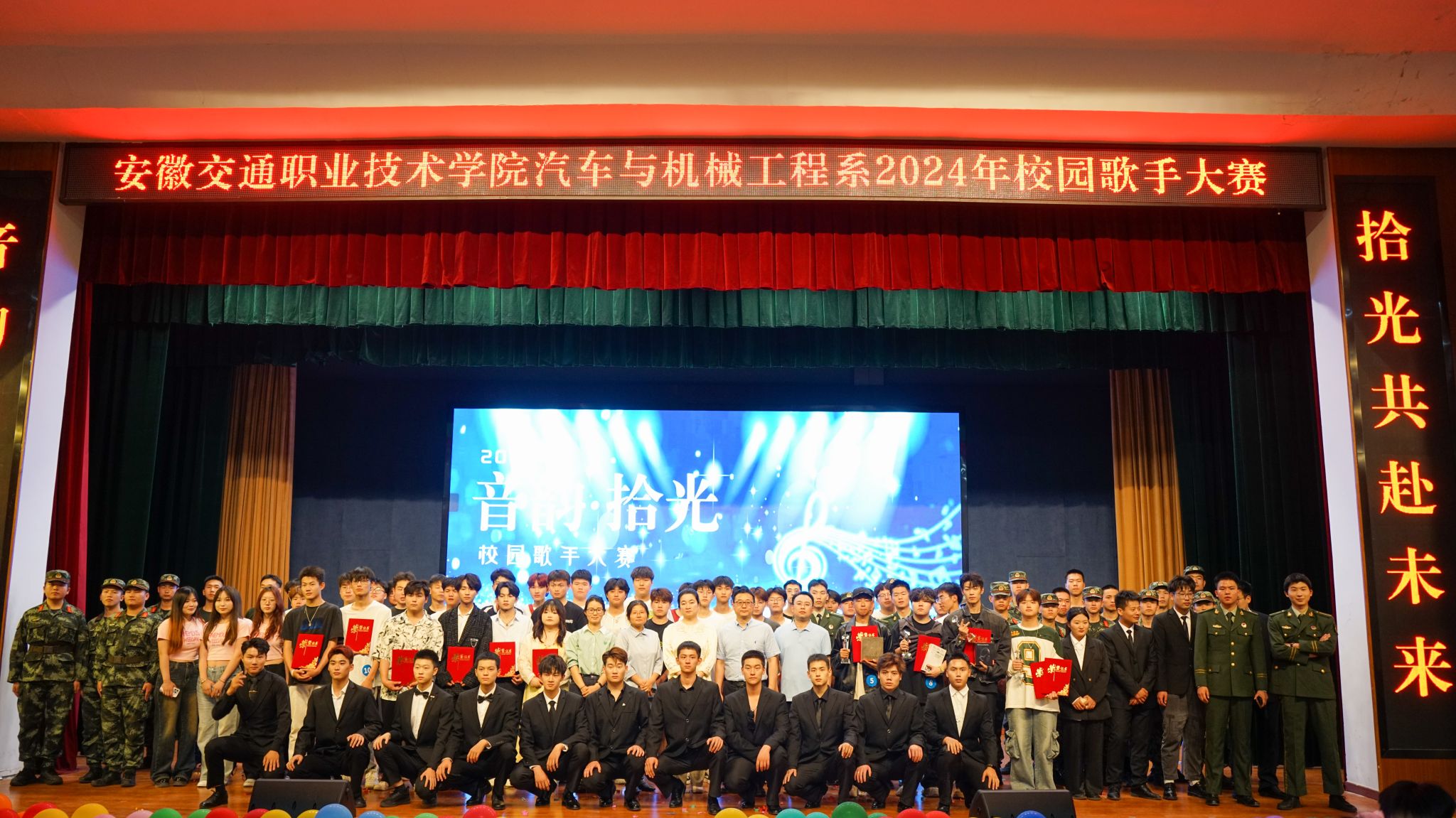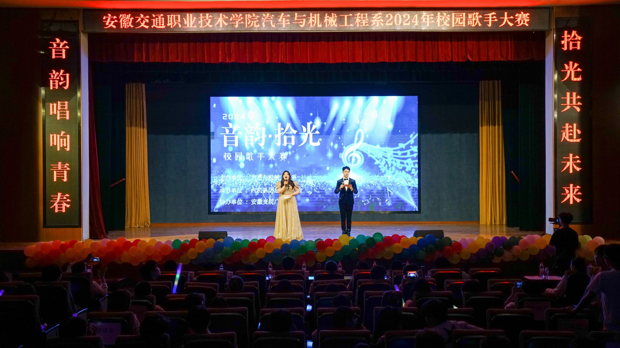 初夏暖意,草木葱茏。5月16日晚,汽车与机械工程系2024年“音韵·拾光”校园歌手大赛决赛在南区大礼堂举行。院党委委员、汽车与机械工程系主任梁洪波,汽车与机械工程系党总支书记沈劲松,院团委副书记张静,系领导班子其他成员以及广大师生齐聚一堂,共同观看比赛。