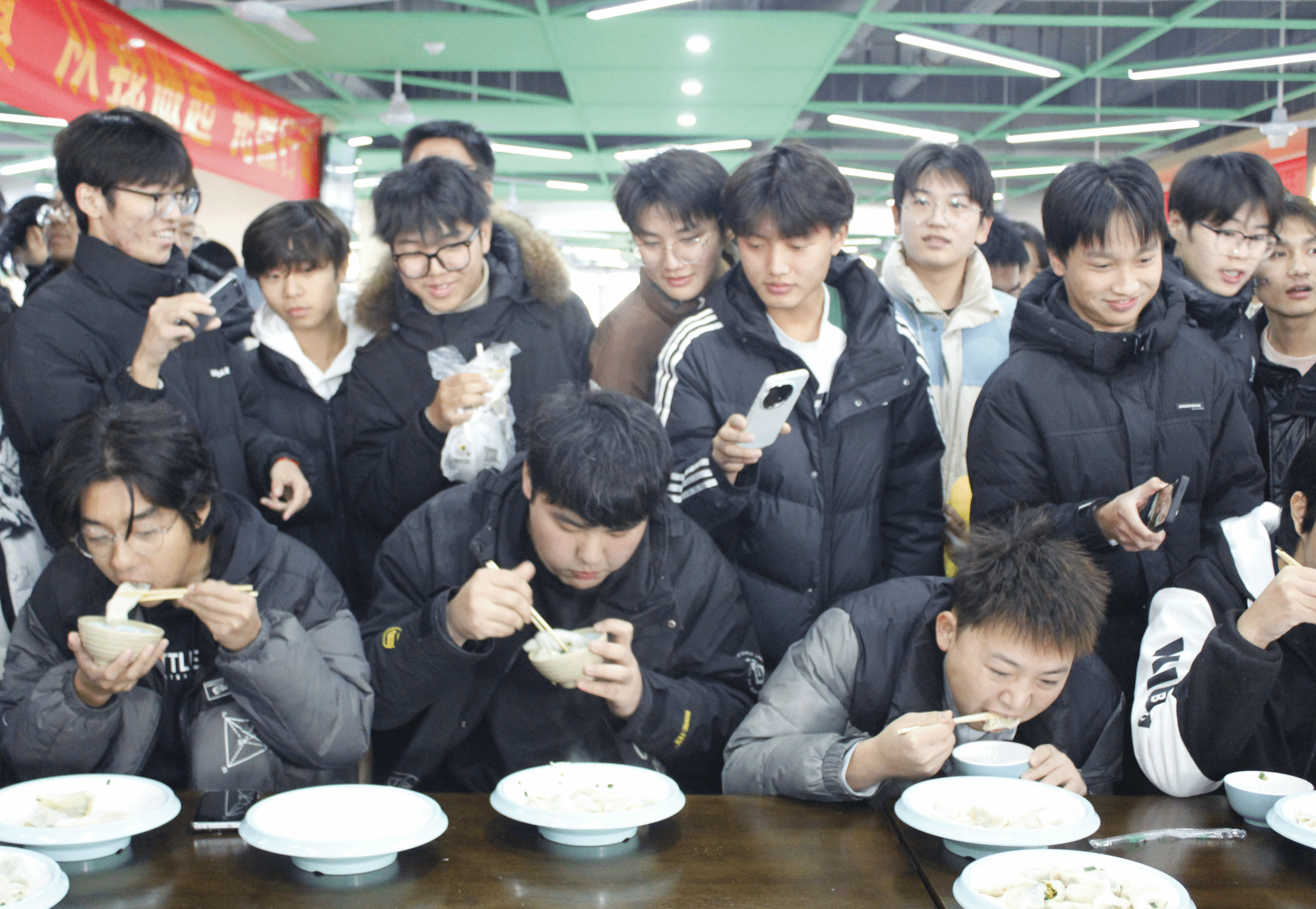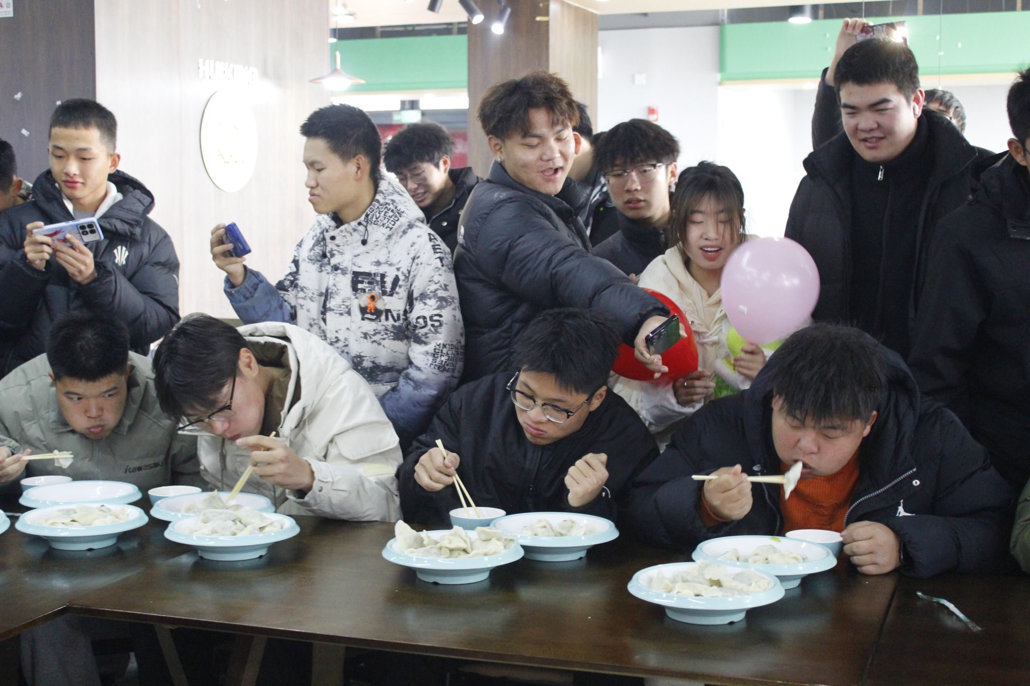 紧张刺激的吃饺子比赛将此次活动推向高潮。各队伍的“大胃王”主力们狼吞虎咽,争分夺秒,为了团队胜利全力以赴。现场观众们积极加油助威,共同点燃全场最为热烈气氛。