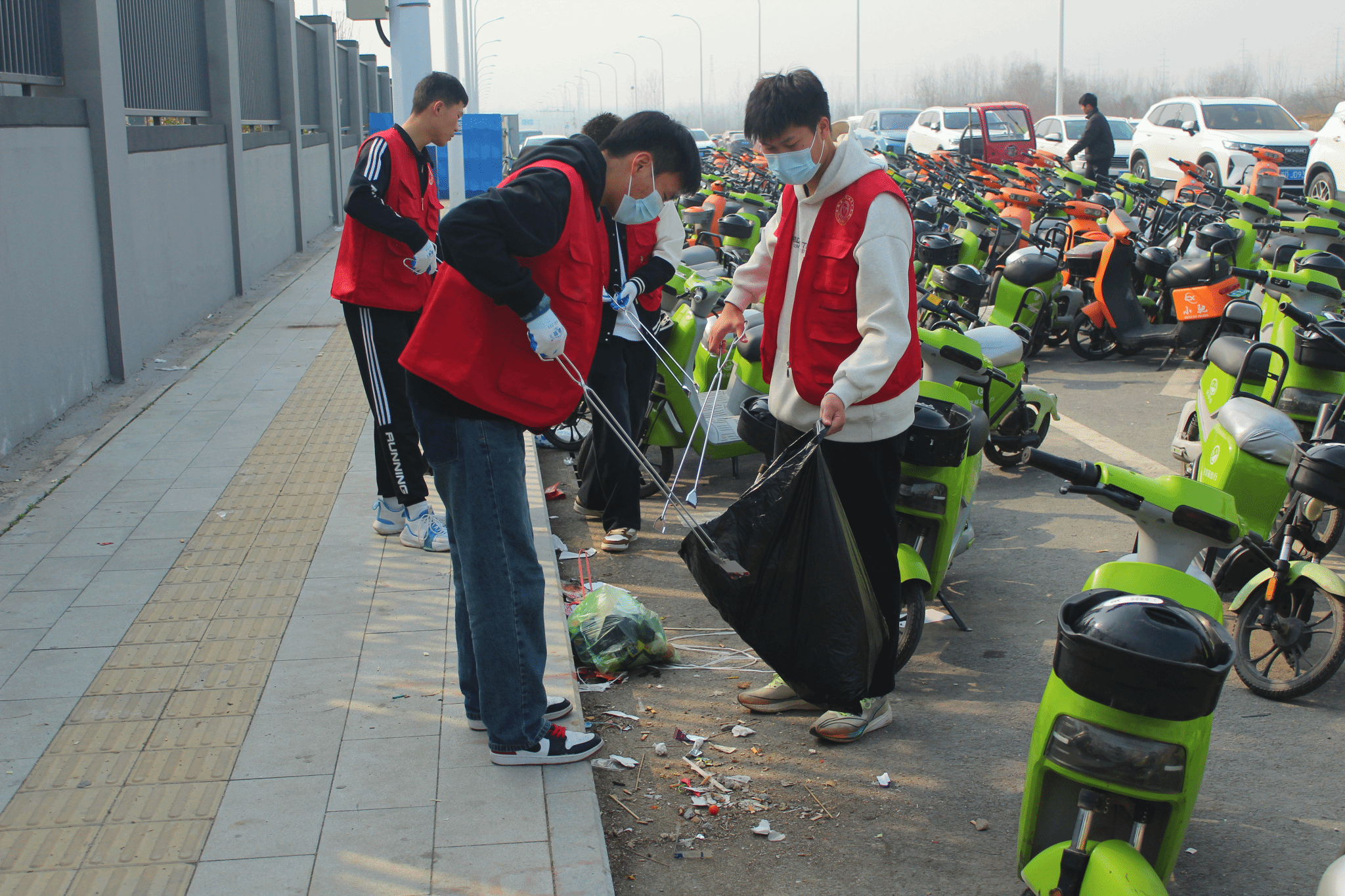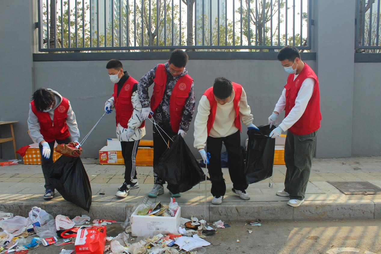 躬身力行,青春志愿显担当。活动当天,志愿者们身着统一服装,手持垃圾袋、垃圾夹等工具,对学校西门及周边道路、绿化带的烟头、废纸、塑料瓶等垃圾进行了细致清理。尽管部分区域垃圾清理难度较大,但志愿者们热情高涨,不怕脏、不怕累,分工协作,不放过任何一个卫生死角。经过几个小时的努力,学校西门外道路及周边环境焕然一新。