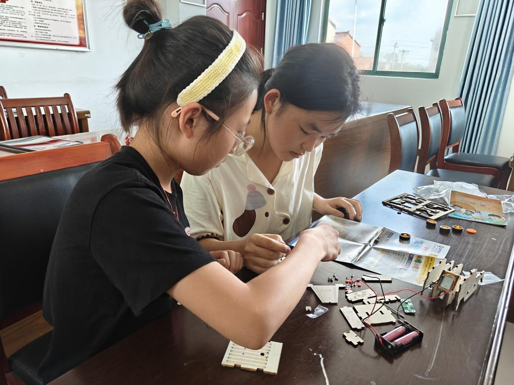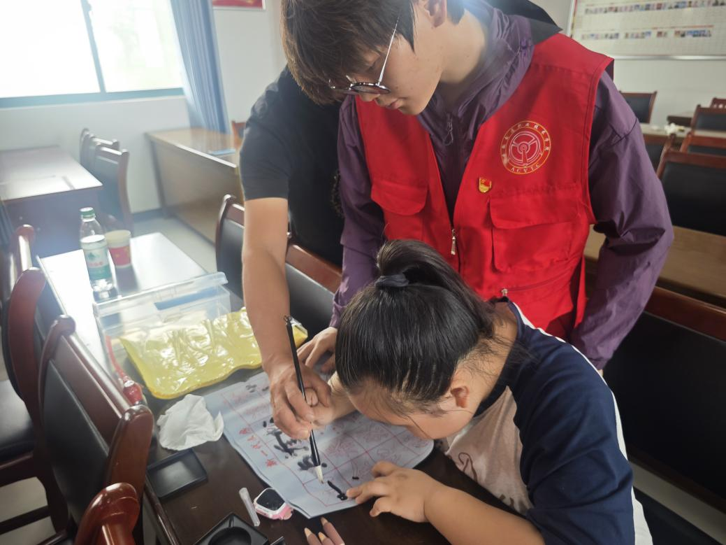 五育并举润童心,守护童年筑梦行。学院秉持“五育并举”理念,为乡村留守儿童们开设德智体美劳五个特色小课堂,让孩子们的暑假更加充实而又富有意义。德育课堂上,志愿者们带领留守儿童一同学习党的光辉历程与伟大精神,通过生动的故事、珍贵的影像资料,让孩子们在学习的同时深刻感受党和国家在时代变迁中的辉煌成就,根植爱国爱党的思想萌芽。智育课堂上,智能汽车专业的学生充分发挥专业优势,开设趣味盎然的智能小车课程。孩子们在志愿者的耐心指导下,近距离接触智能科技,亲手操作智能小车,好奇心与探索欲被充分激发,科技梦想的种子悄然萌芽。体育课堂上,学院的士官生们化身小教练,开展军体拳教学,一招一式都展现出军人的风采与力量。孩子们学得认真投入,既锻炼了身体,又培养了坚韧的意志。富有传统文化特色的投壶游戏更是让现场充满欢声笑语,孩子们在轻松愉快的氛围中增强了团队协作能力。美育课堂里,拥有书法特长的学生志愿者们手把手教留守儿童写书法。从握笔姿势到基本笔画,孩子们一笔一划认真练习,在墨香中感受中华传统文化的独特魅力,提升审美素养。劳育实践中,志愿者带领孩子们认识传统草药,讲解艾草的功效与价值,并共同动手制作艾草锤。孩子们在亲自动手的过程中体会到劳动的乐趣与价值。