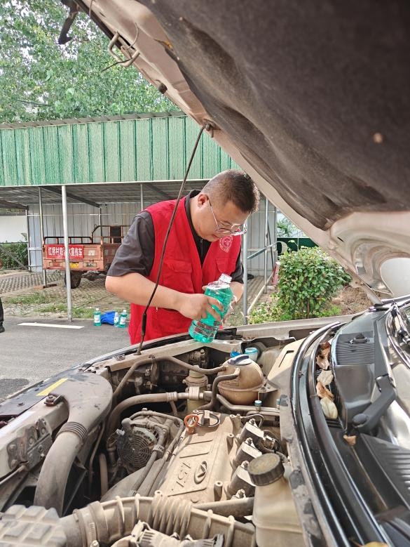 专业赋能惠民生,志愿服务助乡亲。汽车检测与维修、智能汽车等专业的学生充分发挥专业所长,围绕“安全宣传 + 便民服务”开展多样志愿服务。在安全知识普及环节,志愿者们通过图文手册、案例讲解、互动问答等形式,系统开展交通安全宣传,重点讲解农村道路通行规则、车辆盲区风险等实用知识;针对新能源汽车逐步走进乡村的趋势,专门增设新能源汽车安全课堂,详解充电规范、电池保养、应急处理等关键要点,帮助村民消除使用顾虑。在便民服务现场,志愿者们搭起临时服务点,免费为村民提供车辆基础清洁服务,仔细擦拭车身、清理内饰缝隙,让车辆焕然一新;同时开展车辆基础检修、保养指导,手把手教村民识别车辆小故障,逐一为村民解决车辆小问题,提供玻璃水添加等简单服务,用专业知识解决村民日常用车的“急难愁盼”。