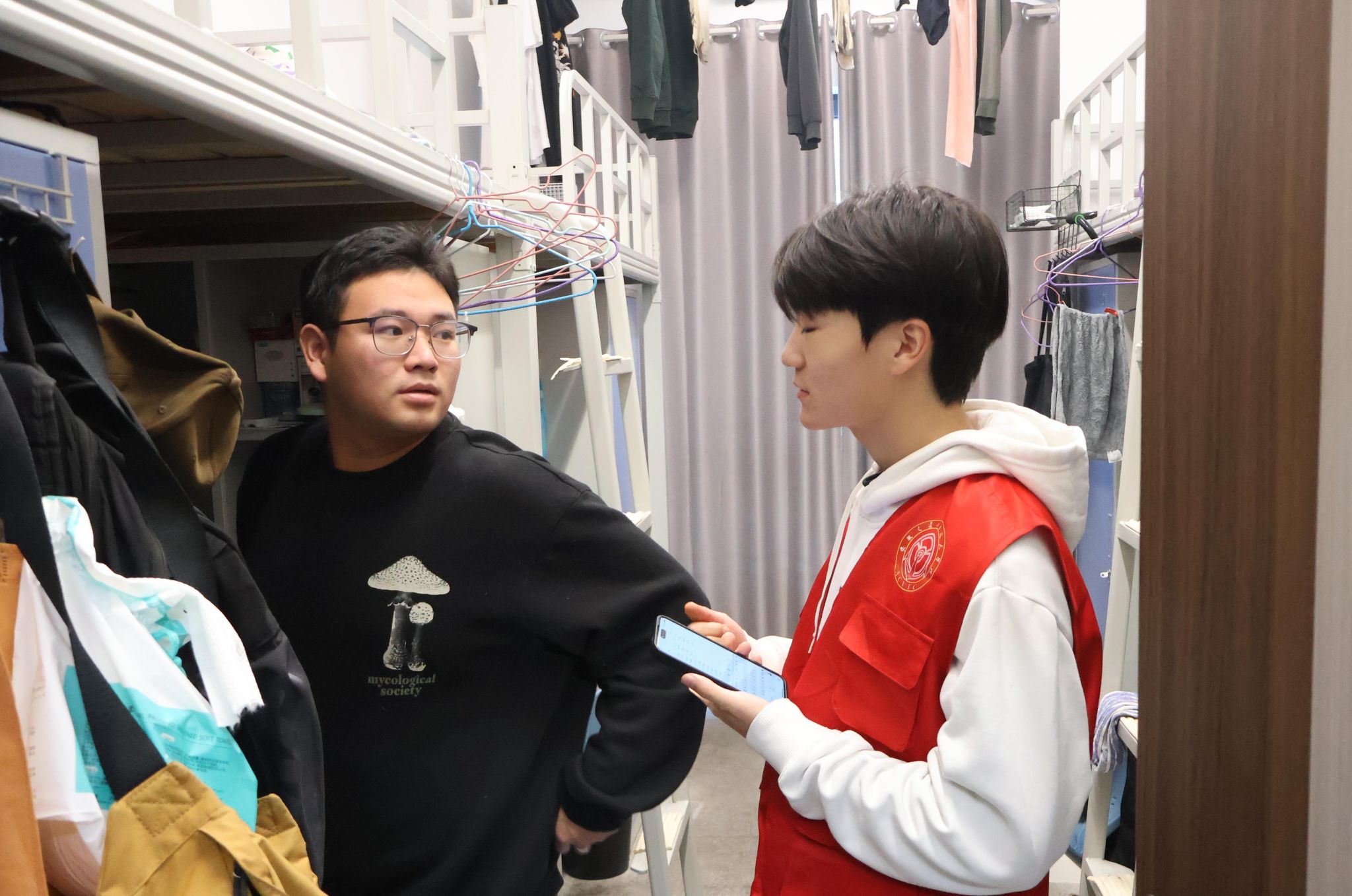 在宿舍宣传过程中,党员师生及入党积极分子化身“禁烟宣传员”,从吸烟对个人呼吸系统、心血管系统等生理健康的危害,到二手烟、三手烟对宿舍同学及周边人群的潜在影响,再到校园内吸烟违反校纪校规的相关规定等方面进行宣传;对全体学生发出倡议,号召大家争做“无烟校园”的践行者、推动者和监督者,共同营造健康、文明、清新的校园氛围。