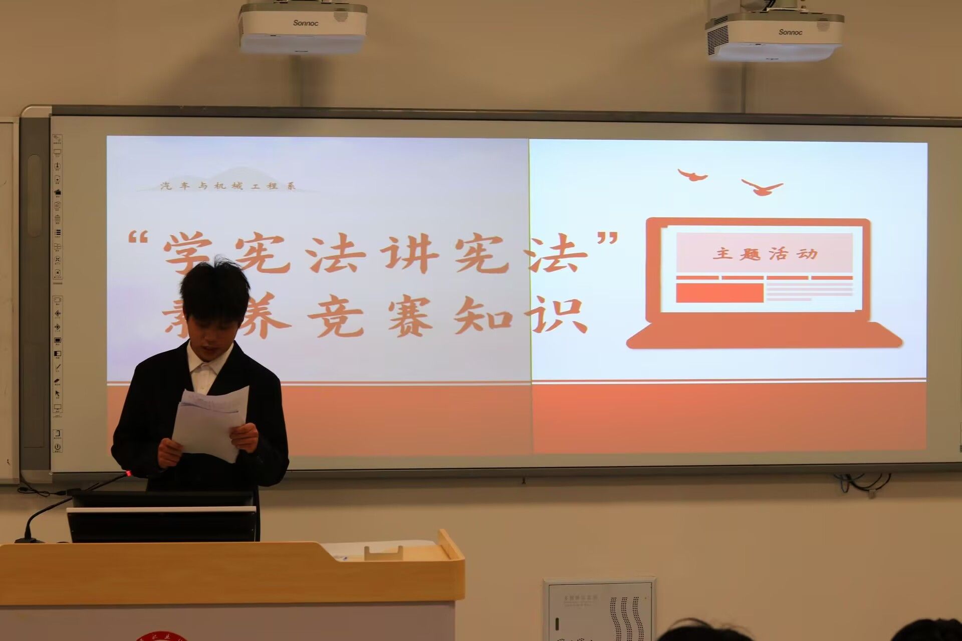 2025年12月4日是我国第十二个“国家宪法日”,为深入学习宣传宪法知识,弘扬宪法精神,厚植青年学子的法治观念与爱国主义情怀,经过多日精心筹备,12月10日晚,汽车工程学院“宪法知识竞赛”圆满落幕。来自全院的9支参赛队伍同台竞技、各展风采,在以赛促学、以赛促用的氛围中,让宪法精神真正入脑入心。