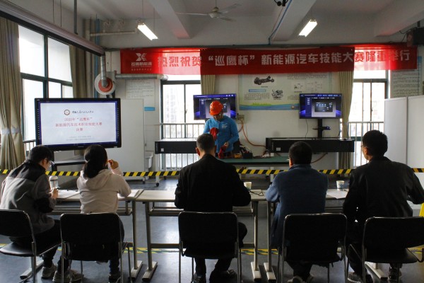 11月11日,汽车与机械工程系第二届新能源汽车技术技能大赛暨“巡鹰杯”新能源汽车技能大赛在我系新能源汽车实训中心举行。大赛有来自19新能源班、19丰田班、19大众班、19通用班、19制造班等6个班级共计69名同学报名参赛,经过初赛角逐后有12名同学成功晋级决赛,最终有王宇博等6位同学在决赛中胜出。大赛特邀安徽巡鹰新能源科技有限公司副总经理杨厚东担任裁判长。