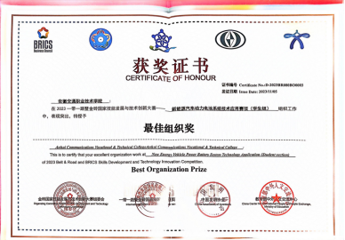 11月4日,2023“一带一路”暨金砖大赛新能源汽车动力电池系统技术应用赛项在长春职业技术学院落下帷幕。米兰汽车与机械工程系两支代表队获得喜人成绩,由杨舒乐、刘青两位老师组成的参赛队荣获教师组一等奖,由程章、杜松两位老师指导,杨志、谢子乾两位同学组成的参赛队荣获学生组一等奖。米兰获“最佳组织奖”称号,程章、杜松两位老师获得大赛“优秀指导教师”称号。