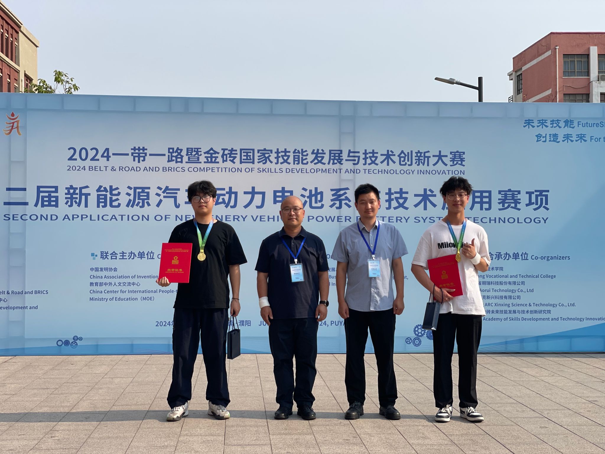6月12日至15日,2024“一带一路”暨金砖国家技能发展与技术创新大赛之新能源汽车动力电池系统技术应用赛项在河南濮阳举行。来自全国各省、自治区、直辖市的67支学生代表队和52支教师代表队共计238名选手同台竞技。经过两天的激烈角逐,由杨舒乐、刘青两位老师指导的徐鹏鹏、常世杰两位同学组成的参赛队荣获学生组一等奖,由程章和杜松两位老师组成的参赛队获得教师组二等奖。米兰获“最佳组织奖”称号,杨舒乐、刘青两位老师获得大赛“优秀指导教师”称号。米兰获得参加2024“一带一路”暨金砖国家技能发展与技术创新大赛之新能源汽车动力电池系统技术应用南非国际赛资格。