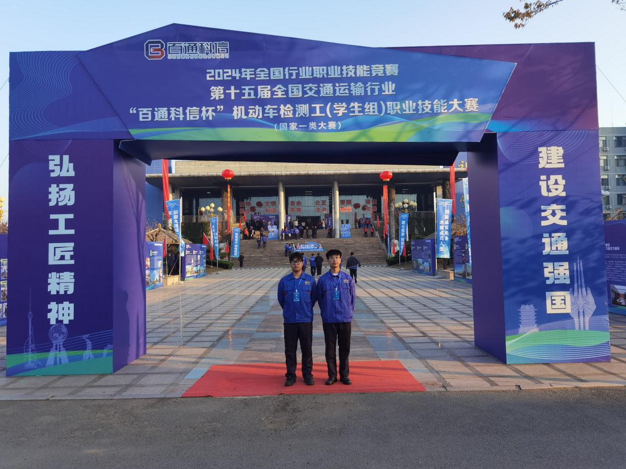 11月3日至8日,2024年全国行业职业技能竞赛—第十五届全国交通运输行业机动车检测工(学生组)职业技能大赛在山东交通技师学院举行,来自全国各省、自治区、直辖市的66支代表队共计132名选手同台竞技。经过三天的激烈角逐,我系23新能源五班常世杰和徐鹏鹏组成的参赛队获得二等奖。