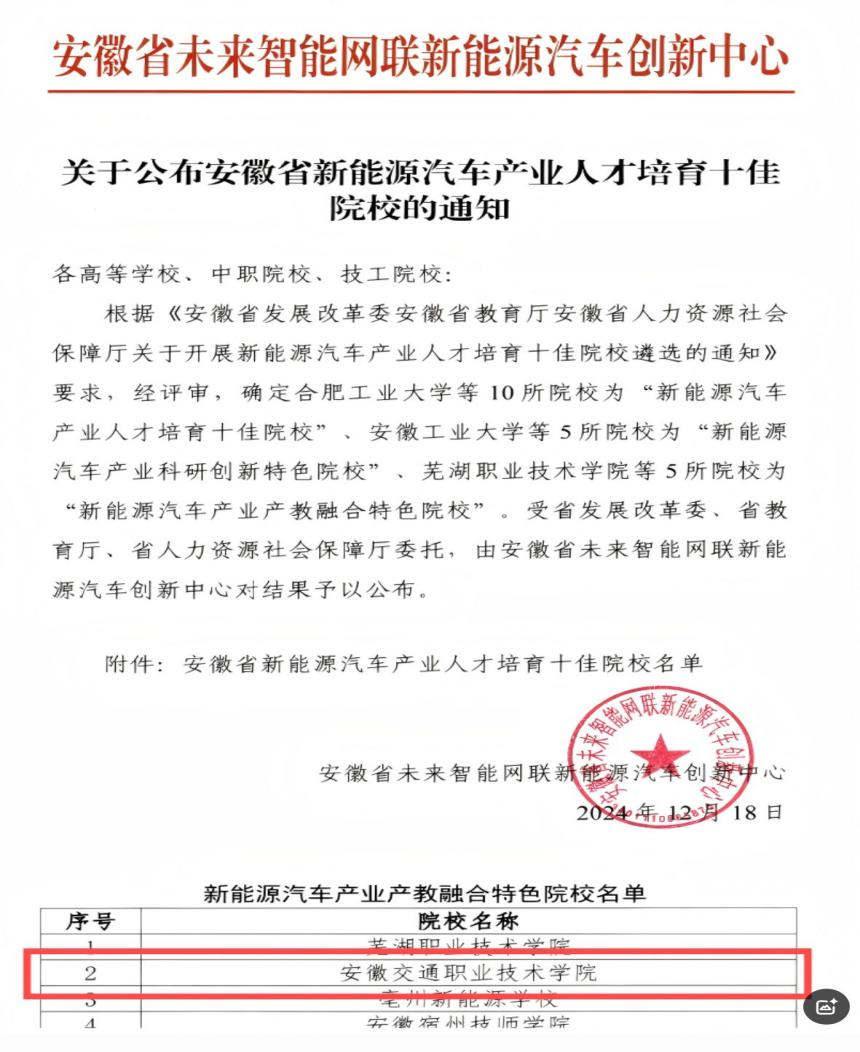 近期,根据《安徽省人民政府办公厅关于进一步规范提升对照学习沪苏浙工作的通知》,经过层层考核,米兰牵头成立的长三角新能源汽车行业产教融合共同体成功入选2024年度对照学习沪苏浙“二十佳”政策举措。