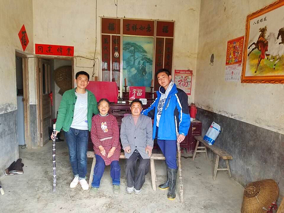 在此之前的24日下午,王天昊、李晨阳、沈捷进同学就将自己的一些衣服送给了沈爷爷,感谢爷爷奶奶这么久以来对他们的帮助。王天昊说:“爷爷奶奶在我们外业测量时对我们关怀备至,那些测桩也是他们提供的,下雨时他们会给我们送伞,并提醒我们提防山上的蛇虫,爷爷奶奶为我们付出这么多,我们回报他们也是应该的”。