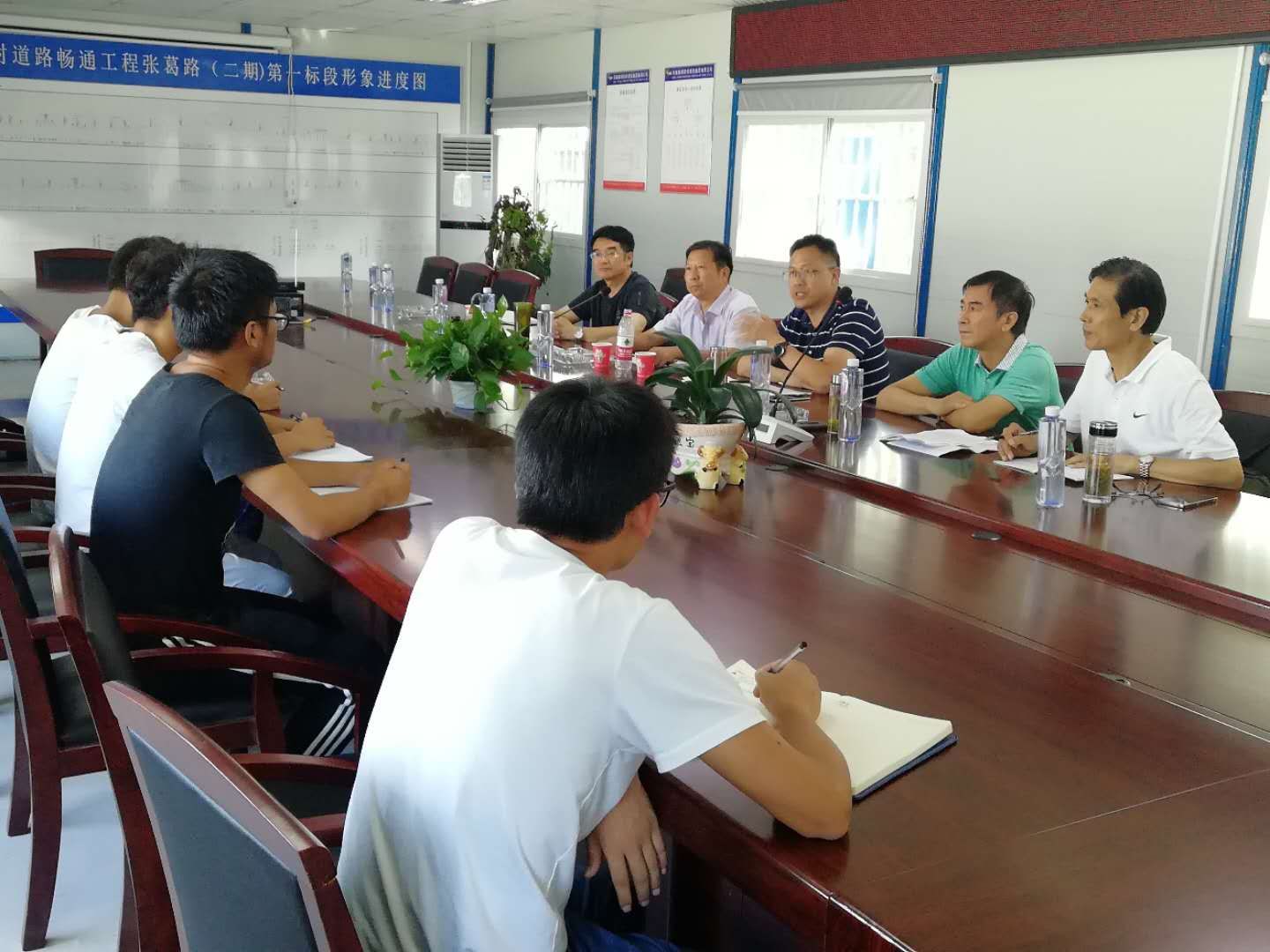 两天来,王主任一行在巢湖路桥集团党委书记李青冬、人力资源部部长汤东方等企业领导的陪同下,分别调研了巢湖路桥位于汤池大道建设工程项目一标、庐江县畅通工程张葛路1标S319军二路改建工程1标,S11芜湖至黄山高速公路路基工程02标项目部,在每个项目部,都召开了现场调研会,与企业领导,项目经理、技术负责人、实习学生等面对面交流,了解学生暑期在企业的实习情况,调研企业对我系学生培养的意见和建议。