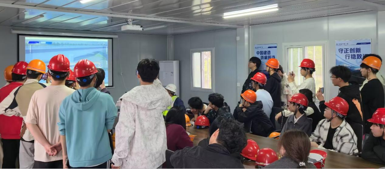 项目俞孟良工程师分别在现场和会议室为同学们讲解跨宁西铁路转体桥梁的施工工艺、流程和技术控制的重难点,对同学提出的问题进行详细解答。