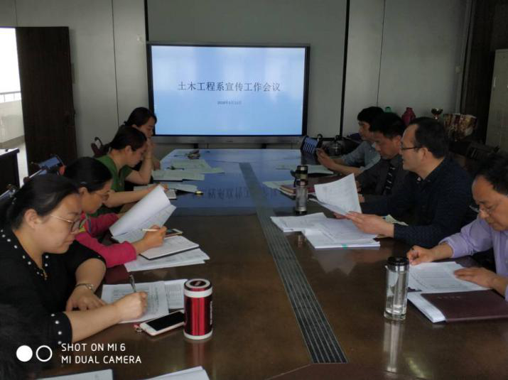 2018年5月11日星期五上午9:00,土木工程系召开了就业、宣传工作会议。系领导、教研室主任及教学和学生管理有关人员参加了会议,坐班人员及部分教师参加了会议,会议由系党总支副书记陶权主持。会议重点研究了学费催缴、就业情况、宣传工作三项工作。