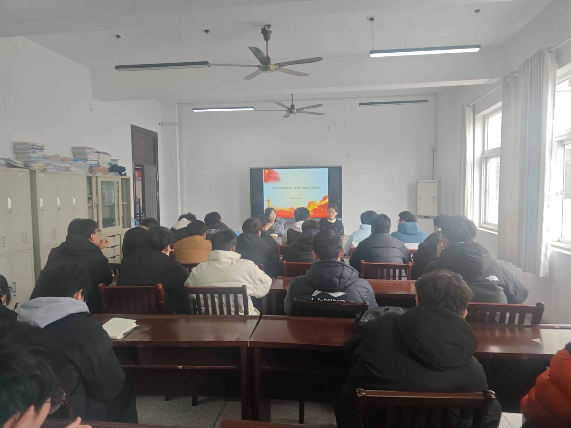 张晨潇老师强调了医保和宿舍两方面工作。提醒各班级在老家参保同学可自愿选择办理补充保险,便可同等享受大学生医保门诊报销等待遇;并分发宿舍公约要求各班将公约张贴在每个宿舍显眼处,提醒各班新学期要继续进行宿舍卫生和宿舍安全大检查,务必严格遵守宿舍夜间管理规定,注意用水用电安全,禁止在宿舍公共区域内燃放烟花爆竹。