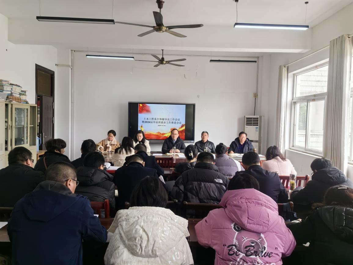 为保障新学期的各项工作平稳有序,切实推动毕业班实习、就业工作,3月6日下午3时,土木系召开全体辅导员工作暨2024届毕业班就业工作推进会议。系领导邹建华、王东、朱蓉、王守胜出席,全体辅导员(含毕业班辅导员)参加,会议由系主任辅导员蒋凤娇主持。