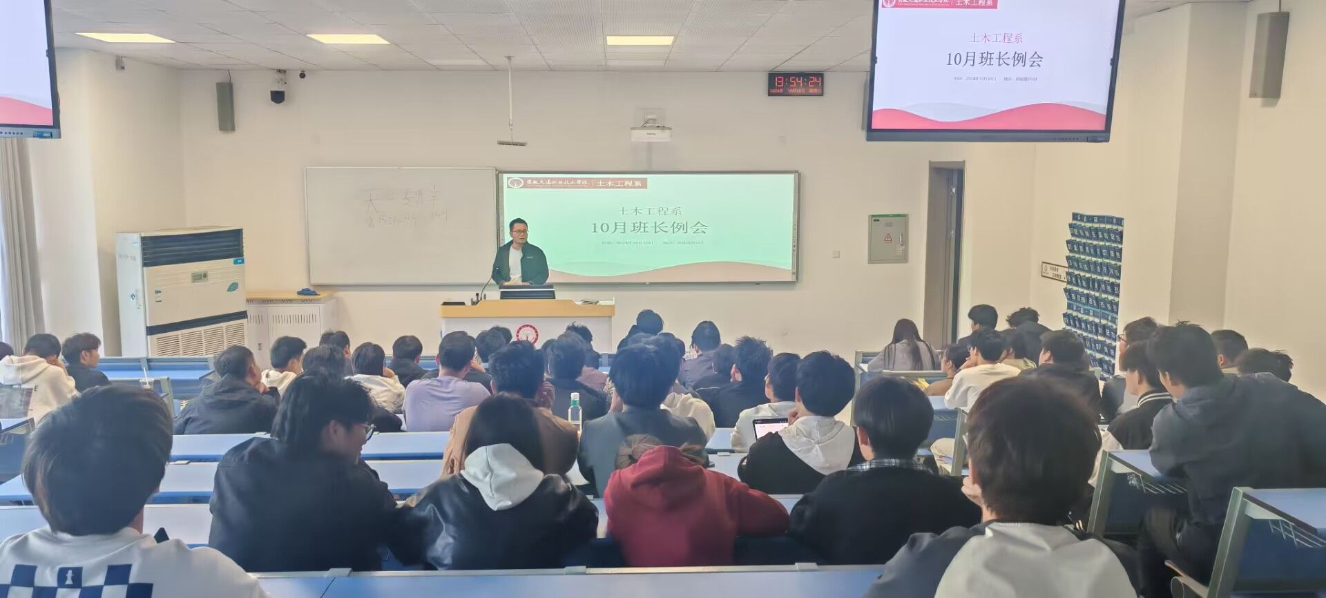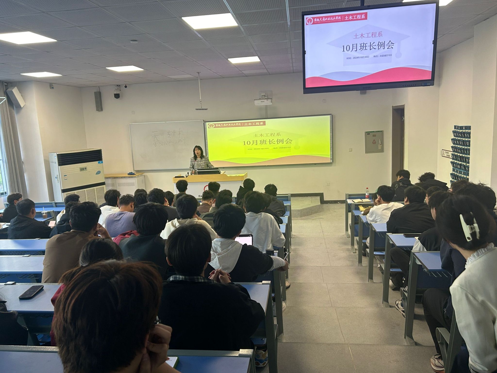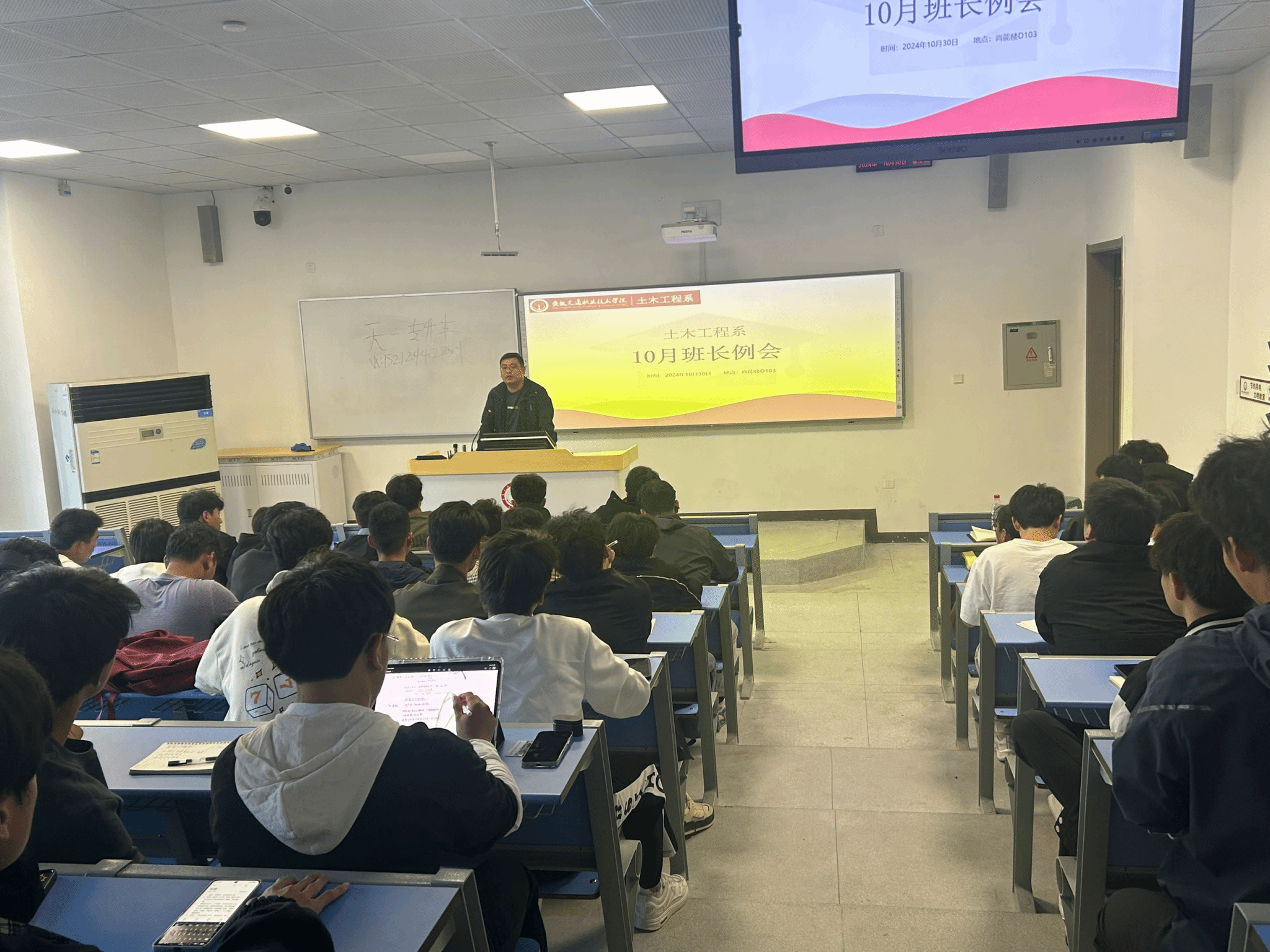 2024年10月30日中午13点45分,土木工程系学生管理办公室和教学管理办公室联合在尚能楼D103召开了10月份班长工作例会,会议由蒋凤娇老师组织,韩彰老师、张晨潇老师、梅维朝老师、系学习部和生活部负责人、23级、24级班长参会。
