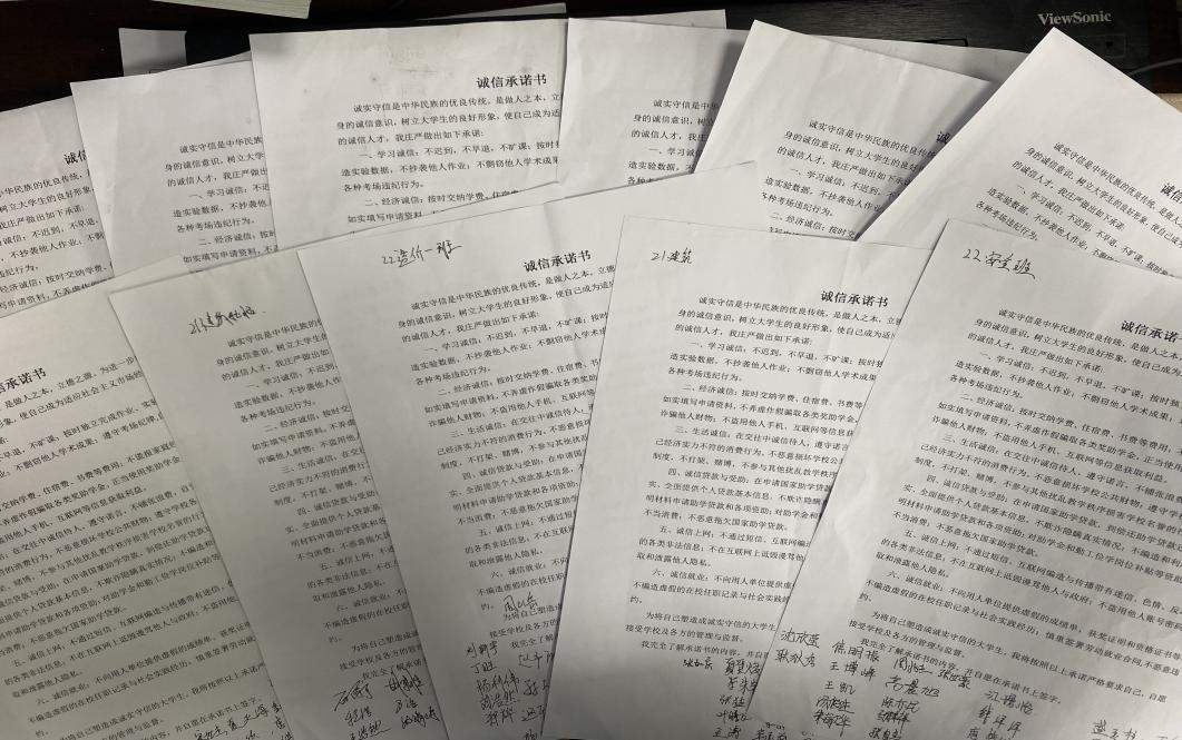 5月12日-5月20日各班级陆续开展了诚信宣誓、签订诚信承诺书等活动,目的是为了进一步提高并强化学生们的诚信意识和感恩意识,引导学生树立正确的消费观念和价值观。
