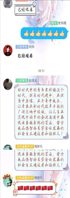 通过这次班会,同学们感受到了国家以及学校对于学生们的关怀,从同学们一段段简短的文字中,感受到了同学们的感恩之心、成才之志,此次线上主题班会圆满结束。