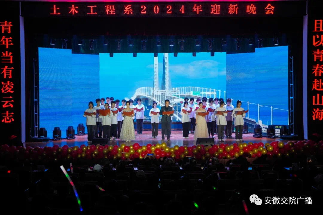 此次晚会在土木系党总支的高度重视支持、土木系团总支的精心策策划、学院团委、安徽交院广播的鼎力支持下,为全系同学呈现出的一场视听盛宴。整场晚会融入了家国情怀、工匠精神,表达出土木青年在中国式现代化建设新征程中的坚守初心、拼搏奋斗、勇担使命的决心和毅力。当好“开路先锋”,为加快建设交通强国贡献青春力量。