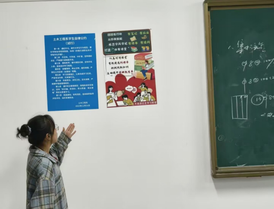为加强系学风建设,提高大学生的纪律意识,营造积极向上、规范有序的课堂氛围,10月下旬,土木工程系团总支开展了“规范学风学纪,打造‘四有课堂’”倡议活动。