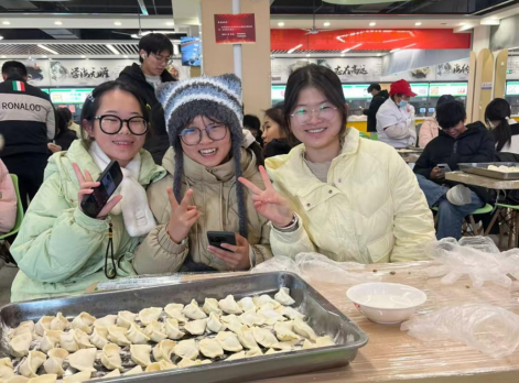 在包饺子的过程中,欢声笑语此起彼伏。同学们相互交流着家乡冬至的习俗,分享着生活中的趣事,现场气氛温馨融洽。一名来自北方的同学兴奋地说:“在我的家乡,冬至吃饺子是必不可少的,还有个传说,冬至吃饺子,耳朵就不会被冻。今天和同学们一起包饺子,让我感受到了不一样的温暖。”