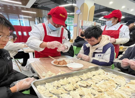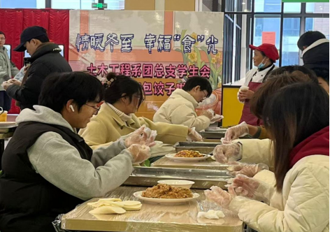 为了弘扬中华传统文化,继承传统习俗,12 月 21日,土木系团总支在学校北食堂一楼举办了“情暖冬至,幸福‘食’光”为主题的包饺子活动。
