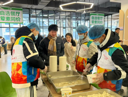 而大部分水饺在中午的时候免费发放给交院的师生们,志愿者们在指定区域热情地招呼着每一位前来的同学。领取到水饺的同学,脸上洋溢着惊喜与感动。他们或围坐在一起分享这份意外的温暖,或独自品味水饺带来的家一般的慰藉,欢声笑语回荡在食堂的每一个角落。