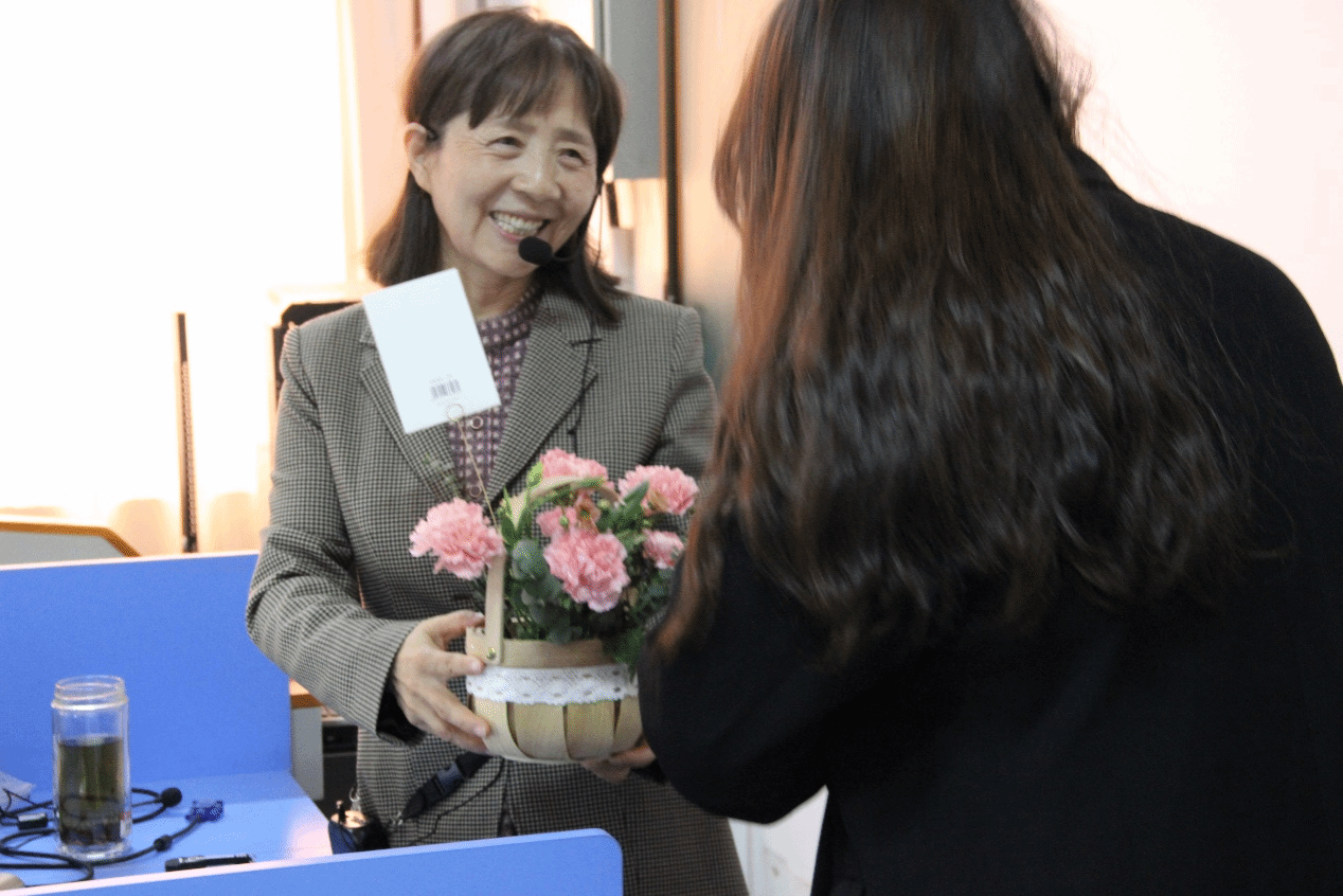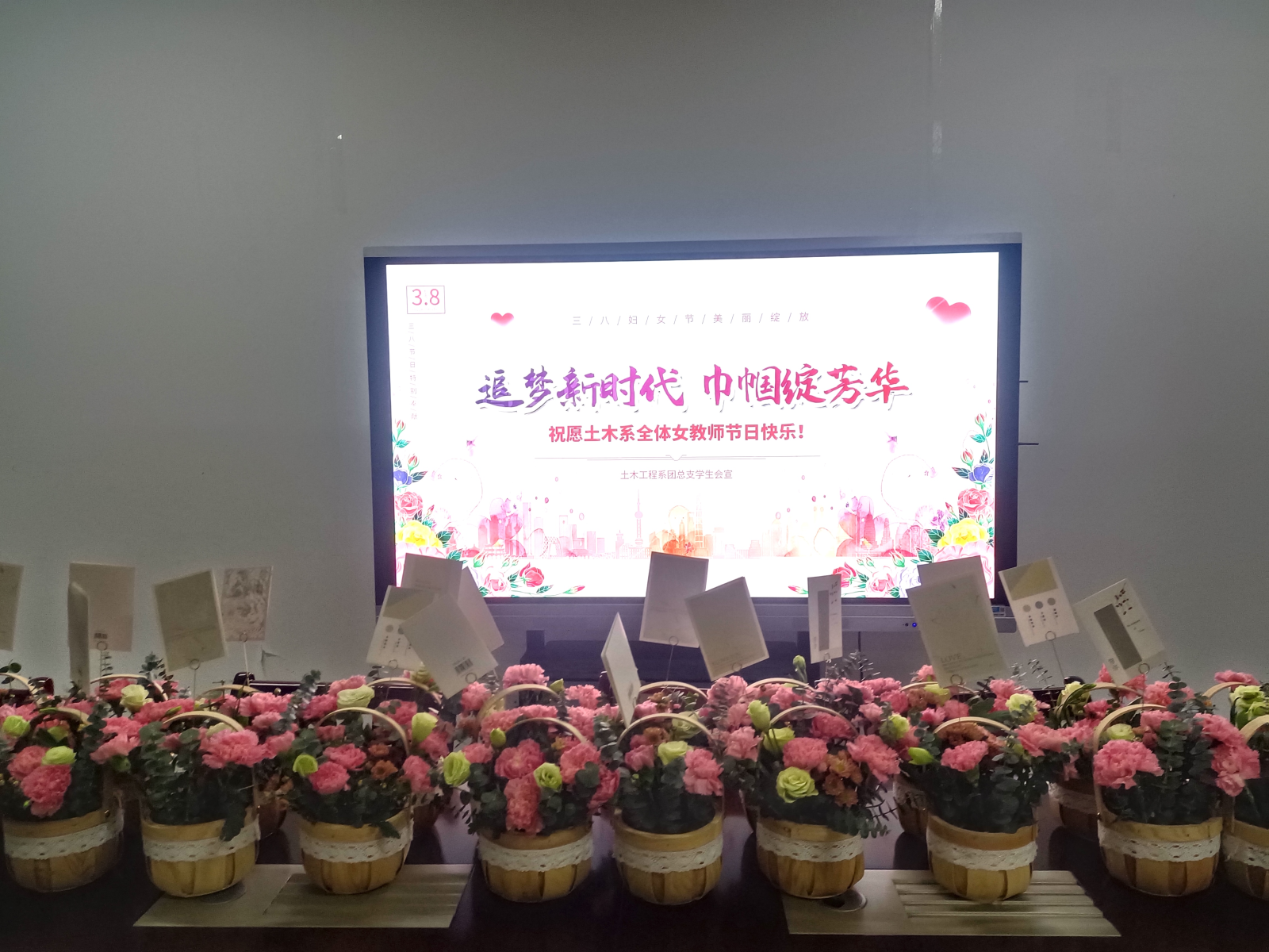 活动中,学生会同学们在教工休息室的大屏幕中展示节日宣传祝福,并亲手写下贺卡插入花篮中,向为学院建设和发展做出贡献的土木系女教师们致以节日的慰问和诚挚的祝福,营造出了浓厚的节日氛围。