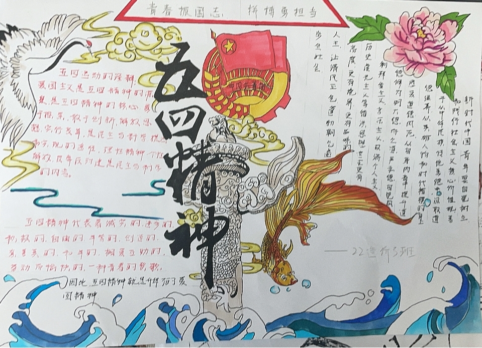 为深入学习贯彻习近平新时代中国特色社会主义思想,弘扬党的二十大精神,传承五四精神,培养青年立志做有理想,敢担当,能吃苦,肯奋斗的新时代好青年,丰富校园文化生活,土木系开展以“青春报国志,拼搏勇担当”为主题的板报、手抄报评选活动。