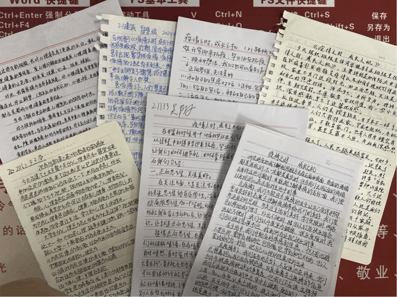 心理教育培训后, 21级各班于5月26日在心理委员的组织下,召开心理主题班会,观看学习视频《疫情之下,成长之机》,各班心理委员认真做了学习笔记。