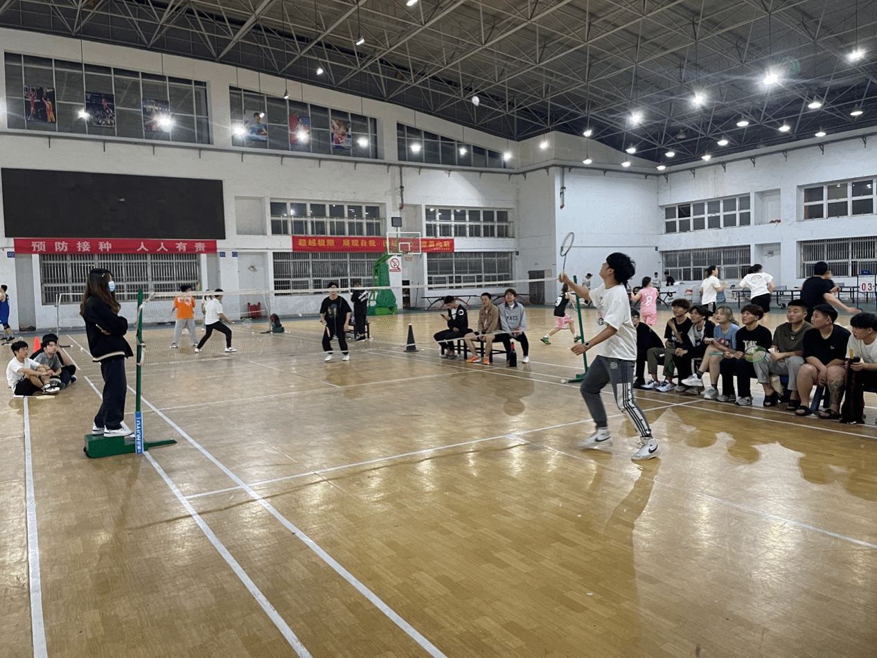 在体育部的积极宣传下大家踊跃报名参与,本着“友谊第一,比赛第二”的原则展开了此次活动。第一场比赛是男子单打,大家轮流抽签两两对决,紧张而又刺激的比赛给观众带来了一场视觉盛宴。高远球,扣杀,劈杀,吊球等各路球技被他们演绎的淋漓精致,比分不断被改写。观众的呼声此起彼伏,整场的气氛被推向高潮。