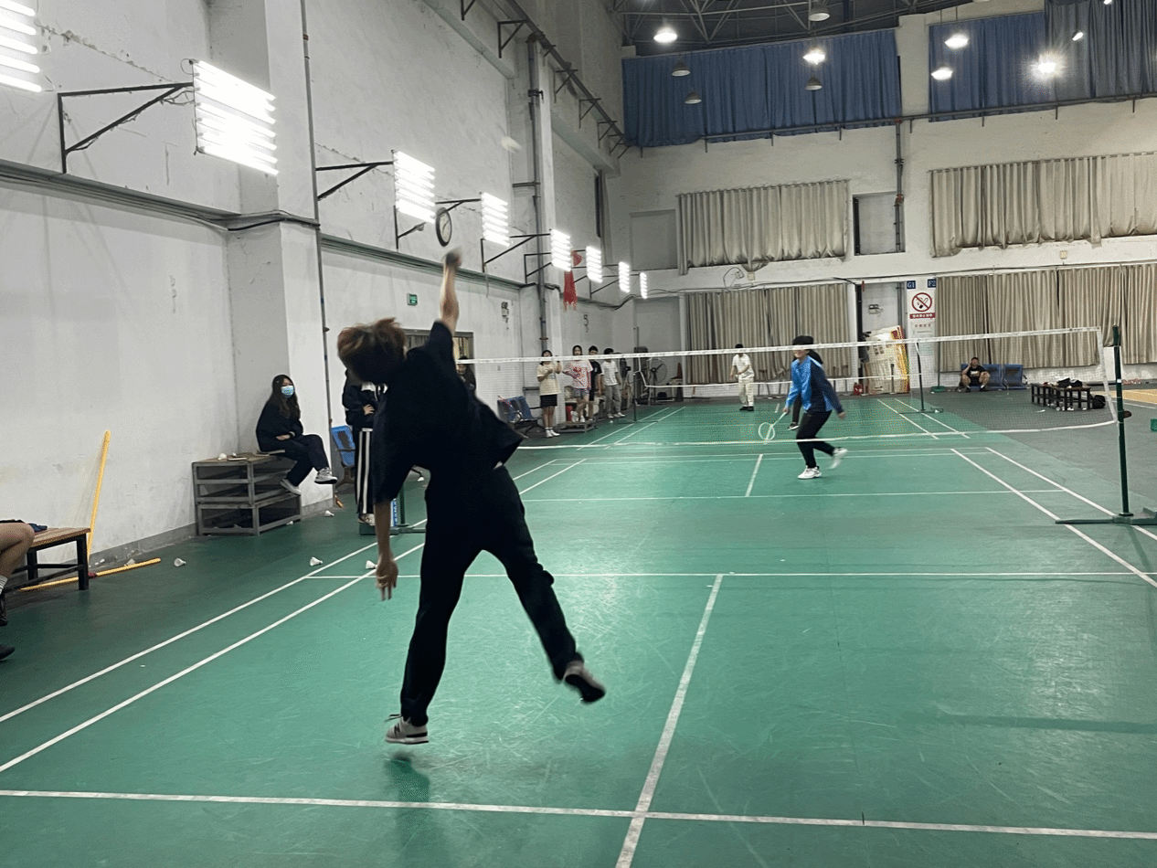 后续又开展了女单和混双的比赛,大家各出奇招,小小的羽毛球被打出了各种花样,大家笑着挥汗淋漓的样子青春又阳光。
