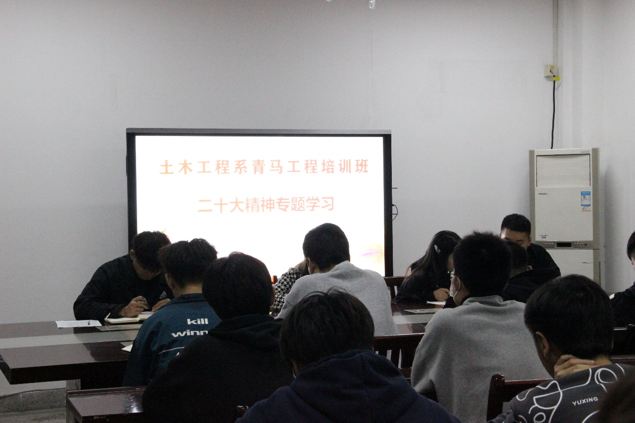 11月24日晚,米兰milan官方网站土木工程系“青马工程培训班——二十大精神专题学习”在土木系会议室举行,在武庆媛老师主持了会议,21、22级全体团支书参加了会议。