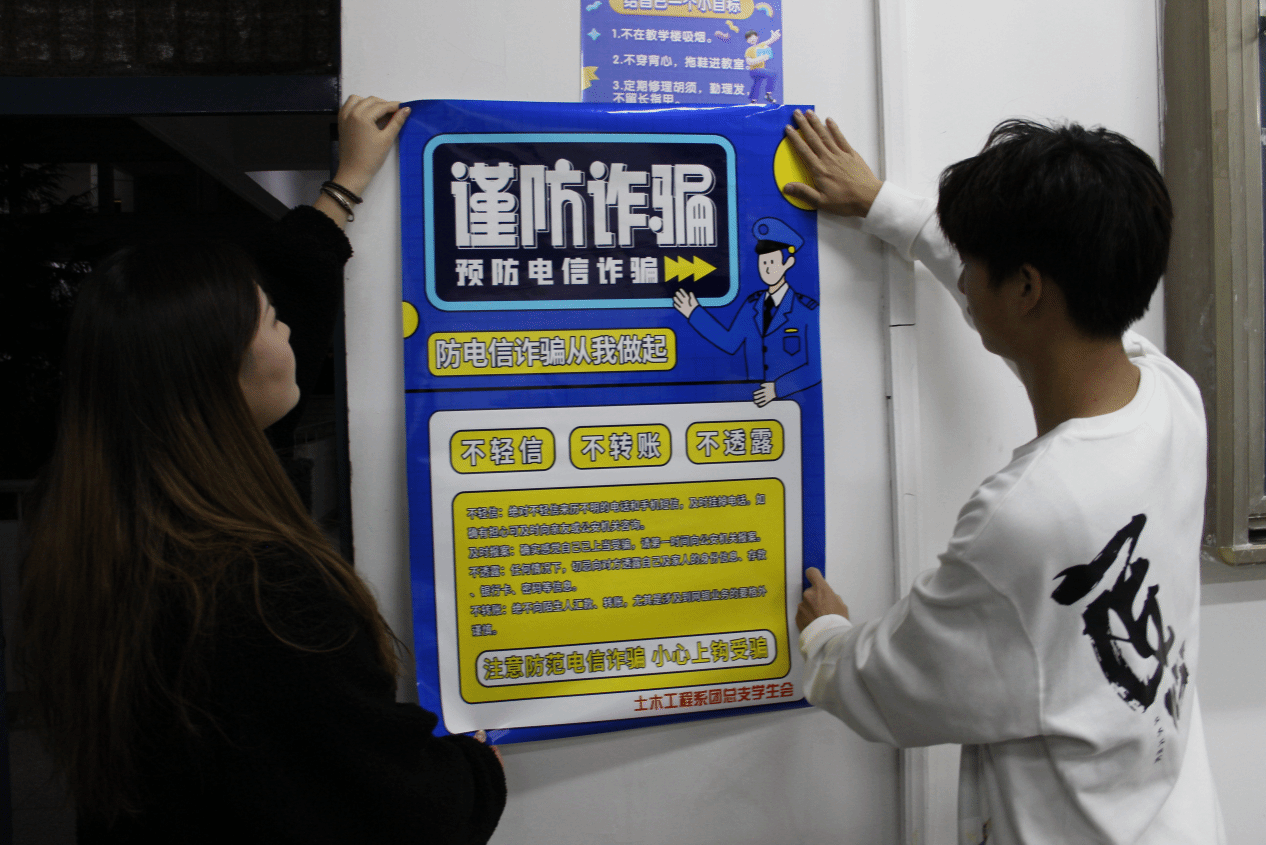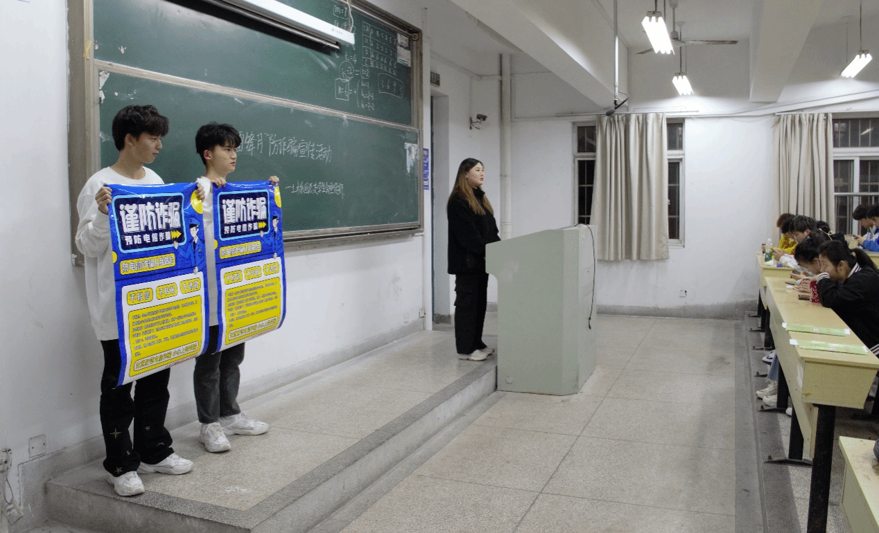 活动中,宣传部成员着重给同学们介绍针对大学生的种种骗局,以及如何应对诈骗手段为主要内容,并以叙述讨论的方式向各班同学介绍各自的经验,提高同学们的防诈骗意识。