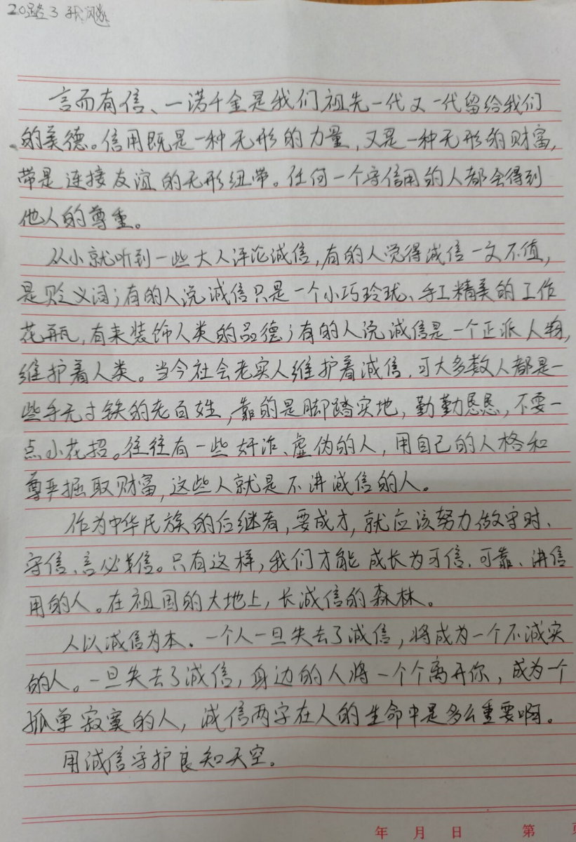 为宏扬诚信精神,加强同学们的诚信意识,以积极乐观,诚实守信的态度去面对未来,土木工程系生活部于5月29日-6月4日在学院开展一场以诚信为主题的征文活动。