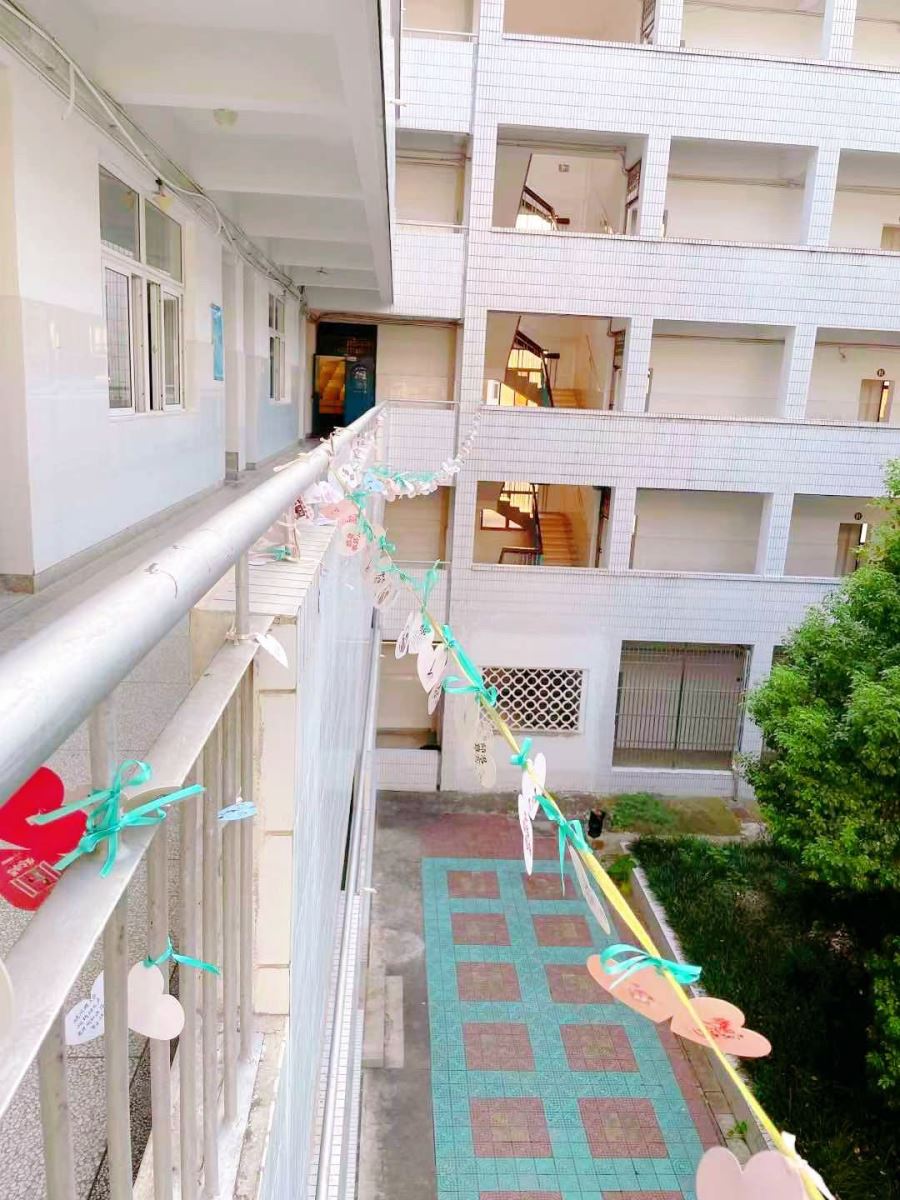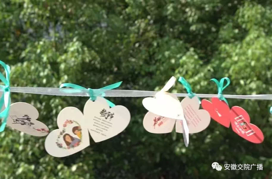 在这个崇高的节日里,为了体现同学们对老师诚挚的祝福感激之情,加深师生之间的情感,我们号召全系学生在卡片上写下对老师的祝福,并将卡片系在彩色丝带上。几百个小卡片连成一片,每当秋风吹起,便满载着同学们最真诚的祝福像蝴蝶一样飞舞在教学楼的扶手上。
