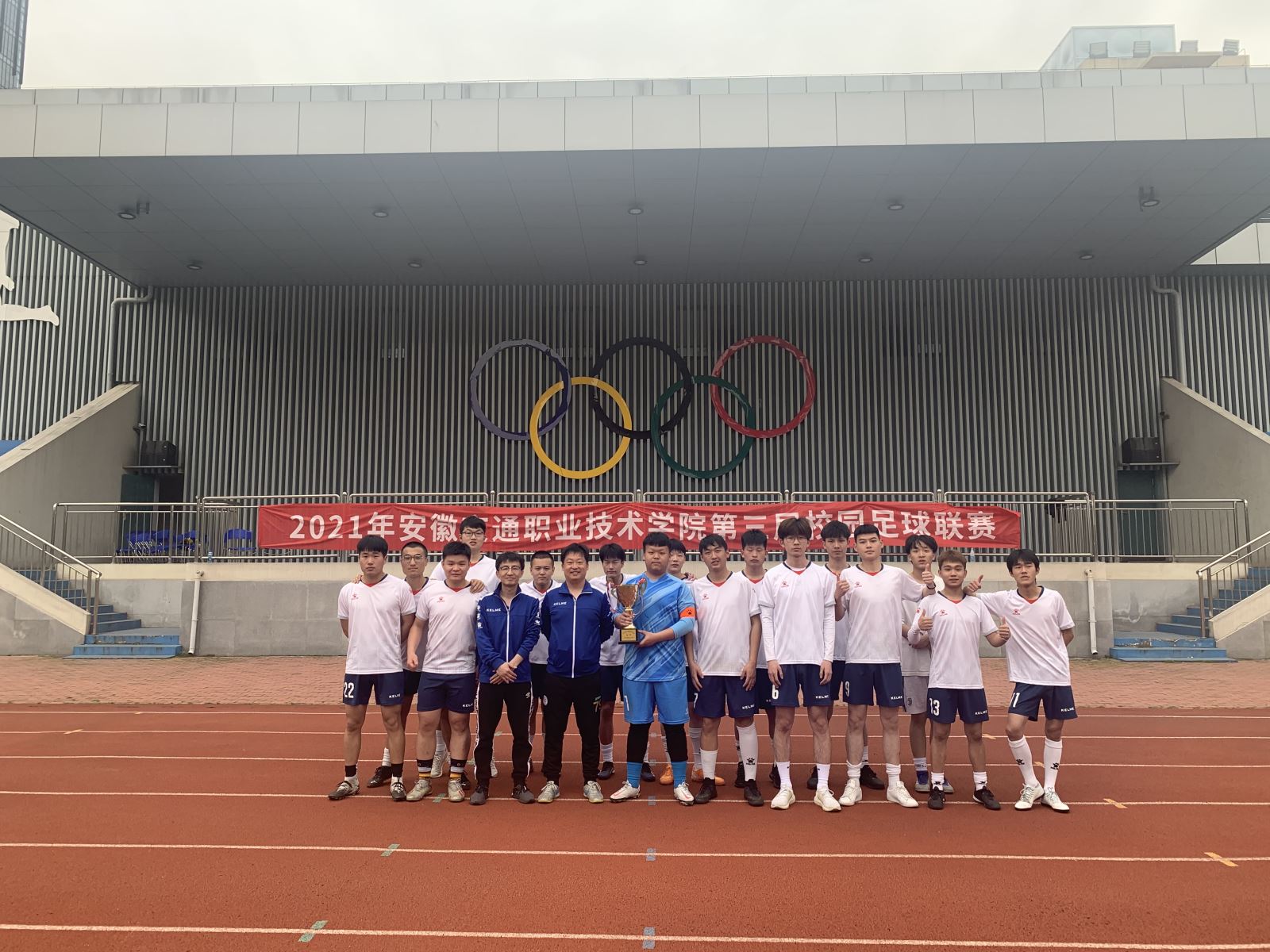 土木系夺冠,每个人脸上都洋溢着笑容,土木系足球队用他们高超的技术、团结的精神和灵活的战术赢得了属于他们的荣誉。也为这段时间以来,足球队每天辛苦的训练流的汗水,何伟、纪凯两位教练老师不遗余力的指导鞭策,领导老师对土木系足球队的全力重视与支持画上了圆满的句号。