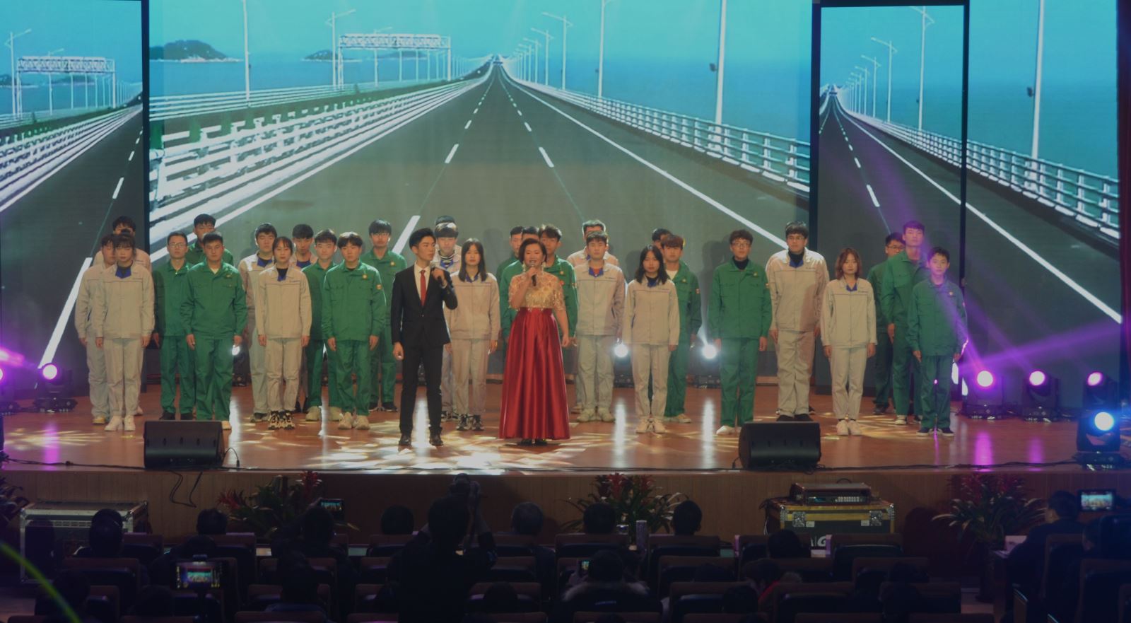 晚会在师生合唱《在灿烂的阳光下》和《我和我的祖国》中拉开帷幕,接着收看了学院联播类新闻栏目《交院播报》,了解了学院实现校企合作育人的“现代学徒制”试点改革之路。晚会上,歌曲串烧《岁月流转》通过歌曲和话剧相结合的形式,让观众感受到时间的珍贵。歌舞《我们都是追梦人》带我们领略了学院近几年的发展成就。古典音画《不染》让全体师生得到中国传统文化的熏陶。舞蹈《young》展现出土木系学子的青春活力。在朗诵与情景剧的交融中,港珠澳大桥被展示的栩栩如生,同时,观众们也感受到了港珠澳大桥建设者不怕苦不怕累的精神。最终晚会在同济集团徐贤秀和土木工程系2019毕业生张炜琪演唱的《不忘初心》中圆满画上句号。本场晚会旨在加强米兰与各企业之间的沟通与合作,同时,通过此次晚会,让各企业可以发现更多人才,并为土木工程系学子创造了一个展示自己的舞台,更能够为土木系学子提供一个与用人企业面对面交流的平台。整个晚会精彩纷呈,高潮迭起,表演形式丰富,内容新颖,展示了米兰师生的独特风采。 (记者团 刘宇昂 施欣雨/文 孙应 吕战 张睿琳 冯淼/摄)