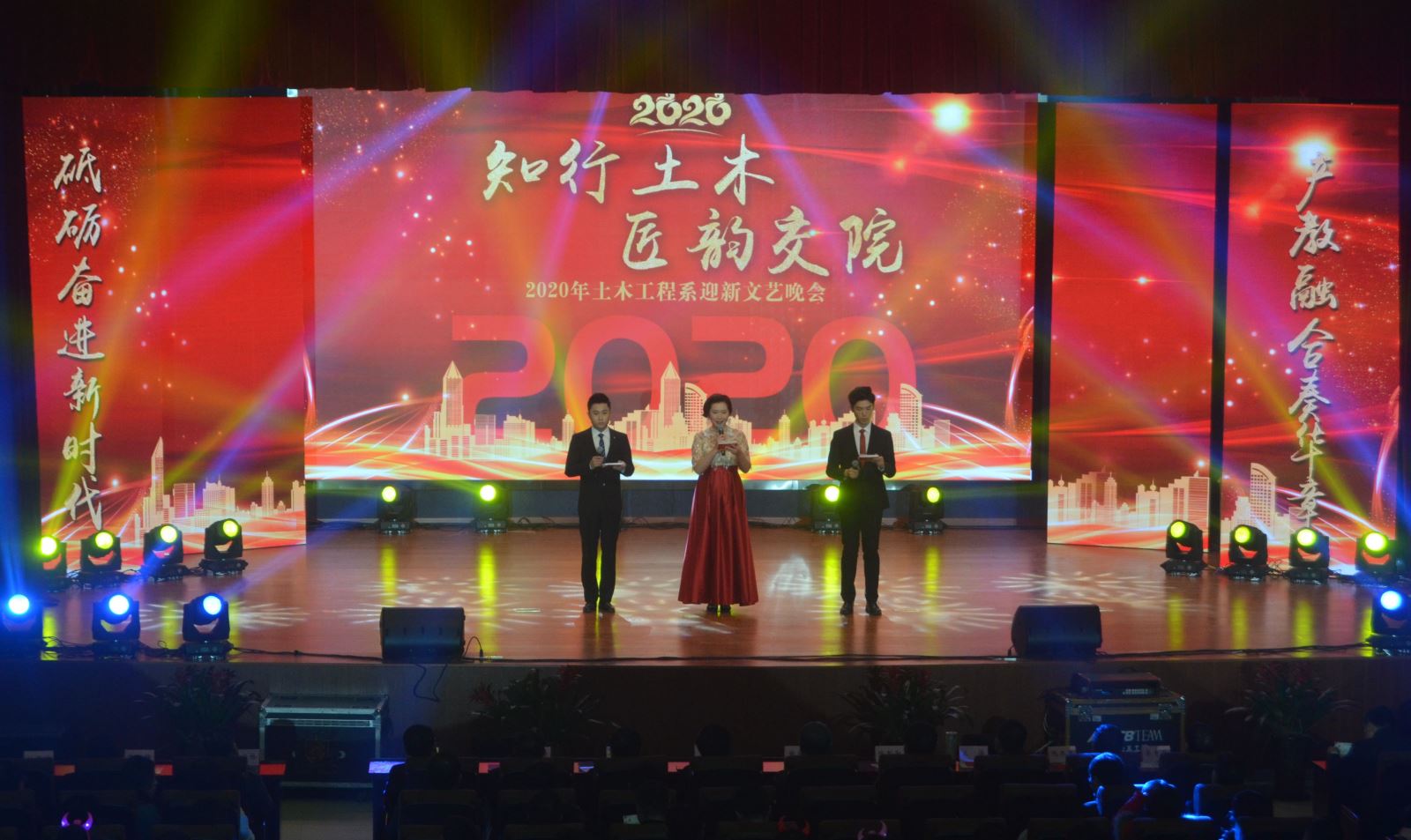 12月26日晚,由土木工程系团总支主办,土木工程系团总支学生会承办的2020年迎新文艺晚会在南区大礼堂举行。院长张国栋,副院长王丰胜,党委委员、组织人事处处长杨先奇出席,安徽巢湖路桥建设集团有限公司党委书记李青冬、纪委书记阮冬平,安徽省路桥工程集团有限责任公司党委副书记、总经理欧阳志宜,安徽新路建设工程集团有限公司总经理韩恒忠,安徽力聚投资集团党总支书记陈邦勤、集团董事卫俊,安徽省高等级公路工程监理有限公司党委书记杨冬林、合肥公路建设集团有限责任公司代董事长、党委副书记李承章、安徽交通建设股份有限公司副总裁吴学懿、安徽天路工程建设集团有限公司总经理姚磊等来自14个企业的30位领导与土木系师生共同观看晚会。