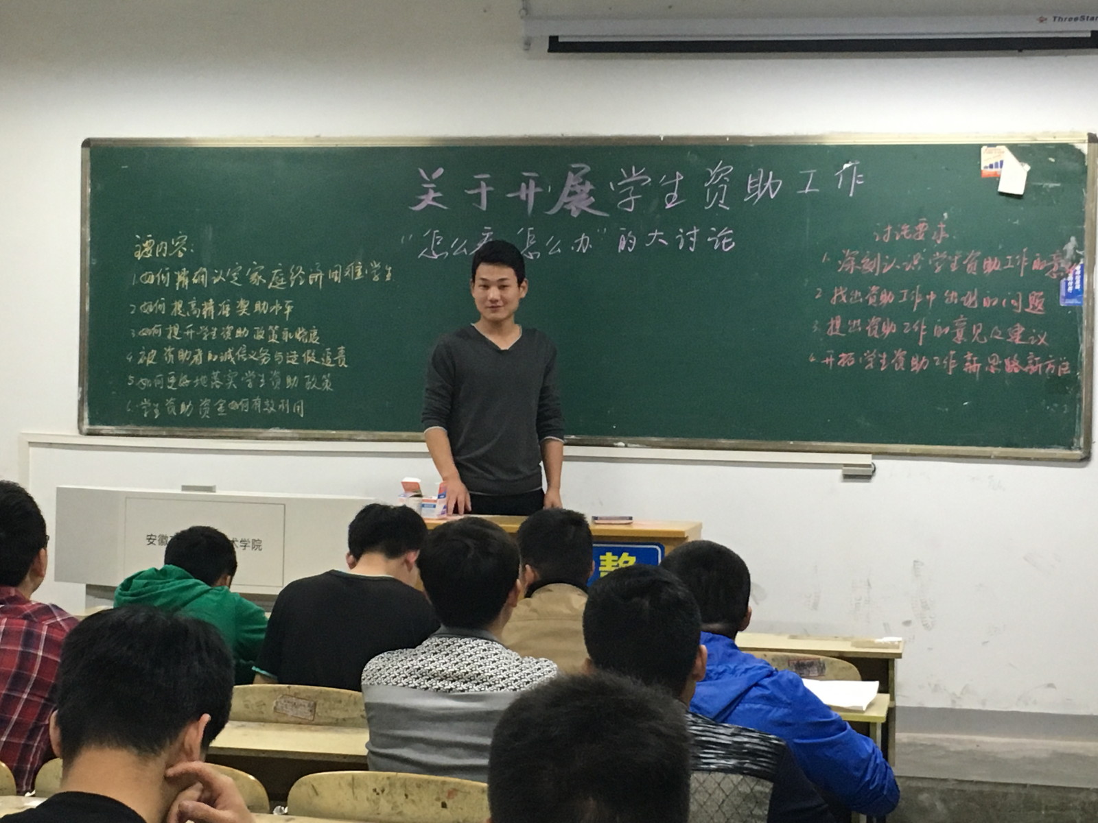 在主题班会上,各班级围绕学生资助工作“怎么看,怎么办”主题展开大讨论,全面畅谈了对学生资助工作重要意义、时代内涵以及在教育公平中的战略地位的认识和理解,认为学生资助工作是党和国家给予贫困学子的关爱,在我国全面建成小康社会的国家大战略背景下意义重大。其中,就如何精准认定家庭经济困难学生,学生资助资金如何有效利用及如何提升学生资助政策知晓度等问题进行重点讨论。