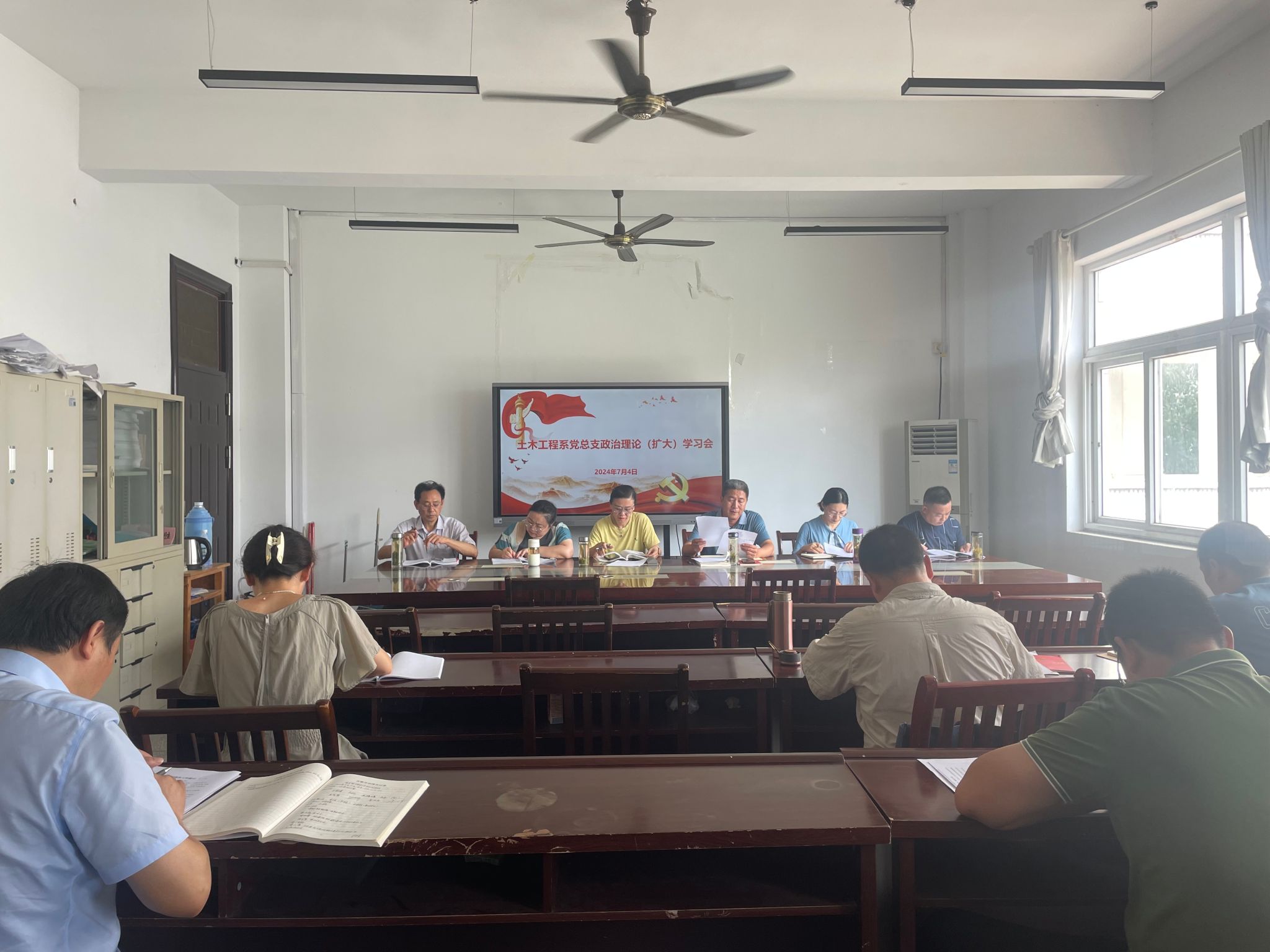 7月4日下午,土木工程系党总支召开政治理论(扩大)学习会,系领导班子、副科级以上干部、支部书记参加学习。系党总支副书记、主任王东主持会议。