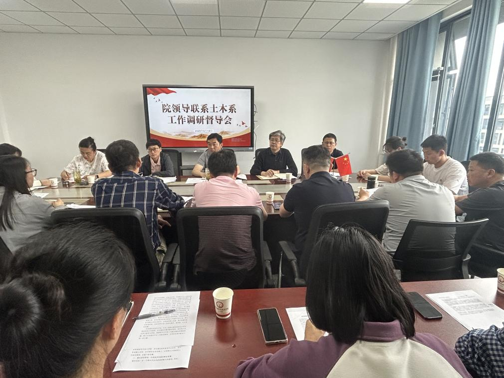 5月14日下午,院长孙晓雷前往土木系进行深入调研并指导相关工作。院办公室副主任主持工作张娟、院组织人事处副处长李细忠随同前往。系党总支书记邵登泰主持会议,土木系教师代表和学生代表参加