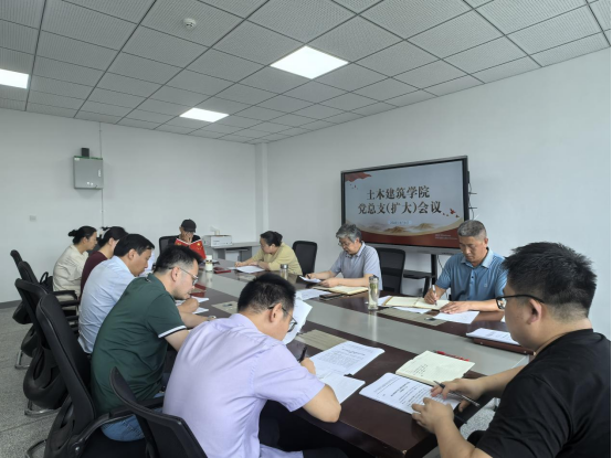 6月9日中午,土木建筑学院召开党总支(扩大)政治理论学习会,领导班子成员、党支部书记、副科级及以上干部参加学习,党总支书记邵登泰主持会议。