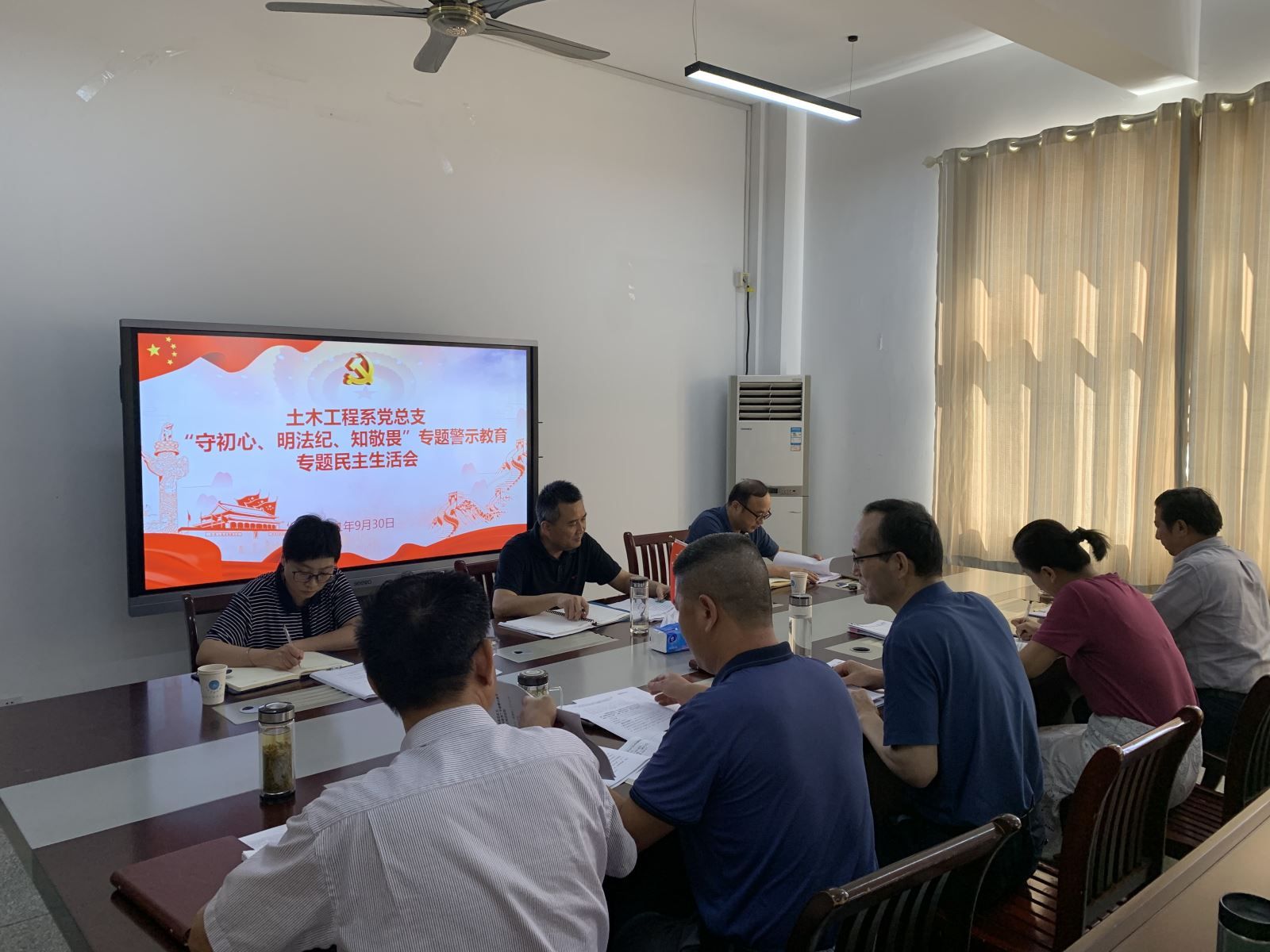 9月30日下午,土木工程系党总支召开“守初心、明法纪、知敬畏”专题警示教育专题民主生活会。院党委书记孙顺利、纪委书记陈明、纪检张娟主任莅临会议并进行了指导,系党总支书记邹建华主持会议。
