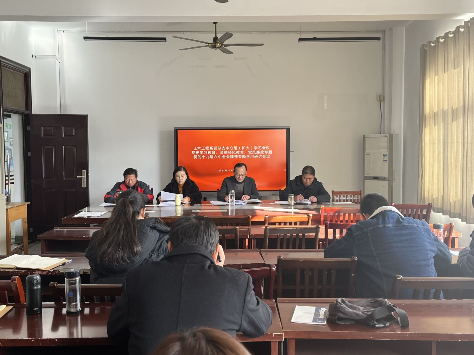 11月22日下午,土木工程系党总支召开中心组(扩大)学习会议,专题学习研讨党的十九届六中全会精神,进一步深刻领会全会的核心要义和丰富内涵,把思想和行动统一到以习近平同志为核心的党中央决策部署上来,切实用全会精神统一思想、统一意志、统一行动。系领导、副科级以上干部、各支部书记参加学习交流。