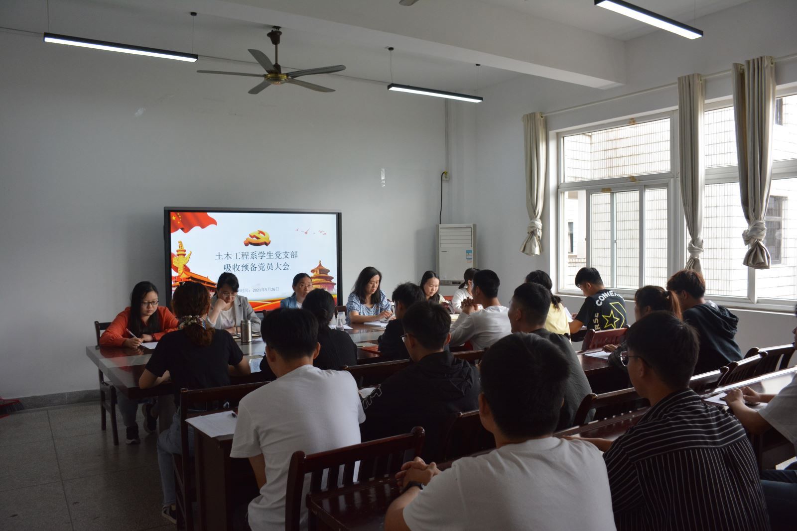 为响应党的号召,培养优秀党员,5月26日下午,土木工程系学生党支部在土木系会议室隆重召开吸收预备党员大会,土木工程系党总支书记邹建华出席宣誓仪式并讲话,学生党支部全体党员、41名新党员参加了宣誓仪式。